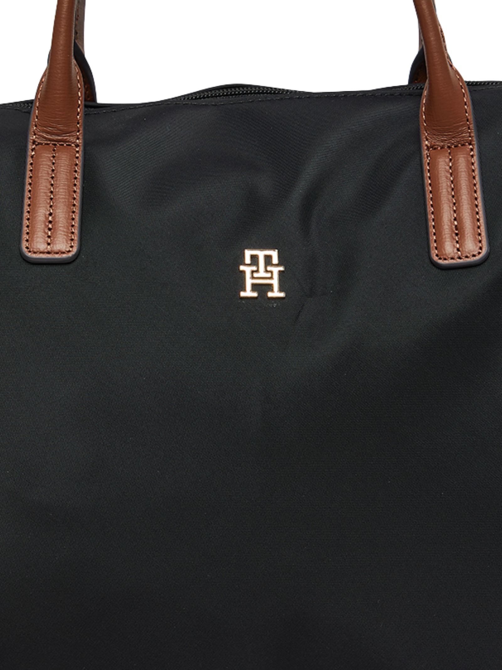 Borsa Tommy Hilfiger in nylon con chiusura a cerniera, due manici superiori a contrasto e tracolla rimovibile, dotata di scomparto principale e targhetta monogramma TH sul davanti, dimensioni 62 x 23 x 34 cm; realizzata in 90% nylon e 10% pelle.