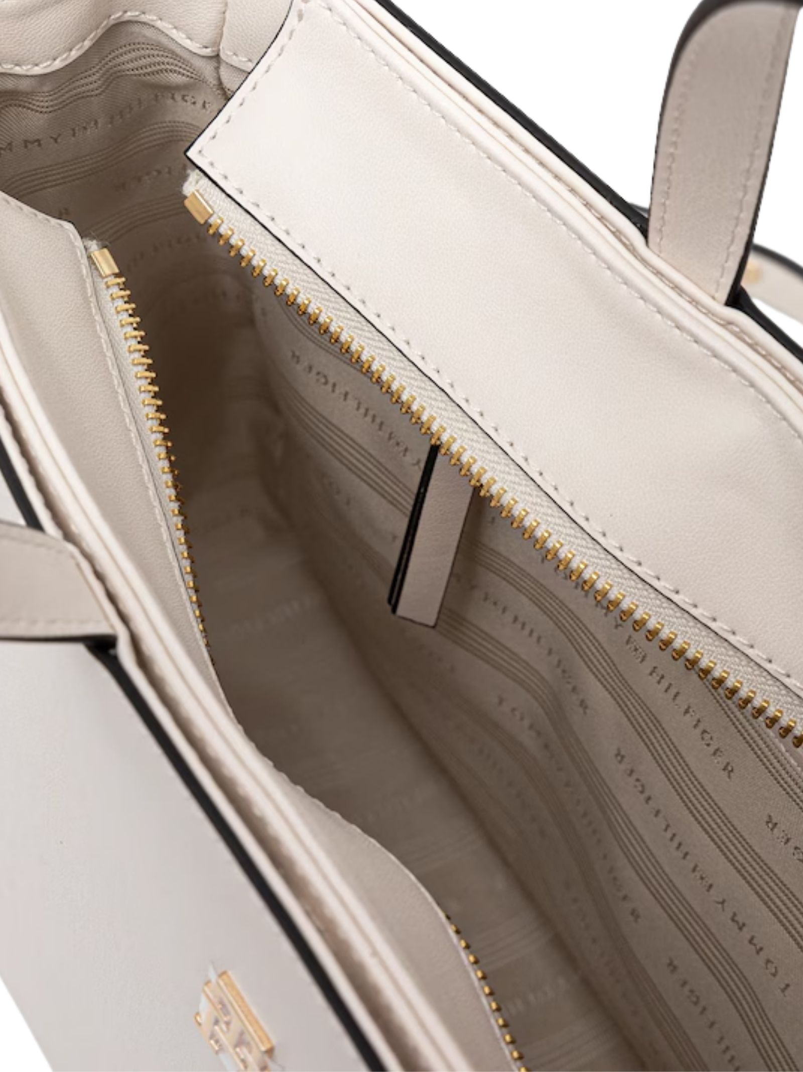 Borsa a mano di medie dimensioni della collezione Tommy Hilfiger, realizzata in ecopelle con chiusura a cerniera. Include una borsa in tessuto per proteggere il prodotto dalla polvere e uno scomparto con cerniera. Manici e tracolla regolabili e staccabili, con tasca interna con cerniera. Non adatta al formato A4. Modello foderato. Dimensioni: altezza 23 cm, larghezza alla base 34 cm, profondità 10 cm. Lunghezza manico 28 cm, tracolla minima 107 cm, massima 125 cm. Materiale principale: 100% poliuretano, fodera: 100% poliestere.