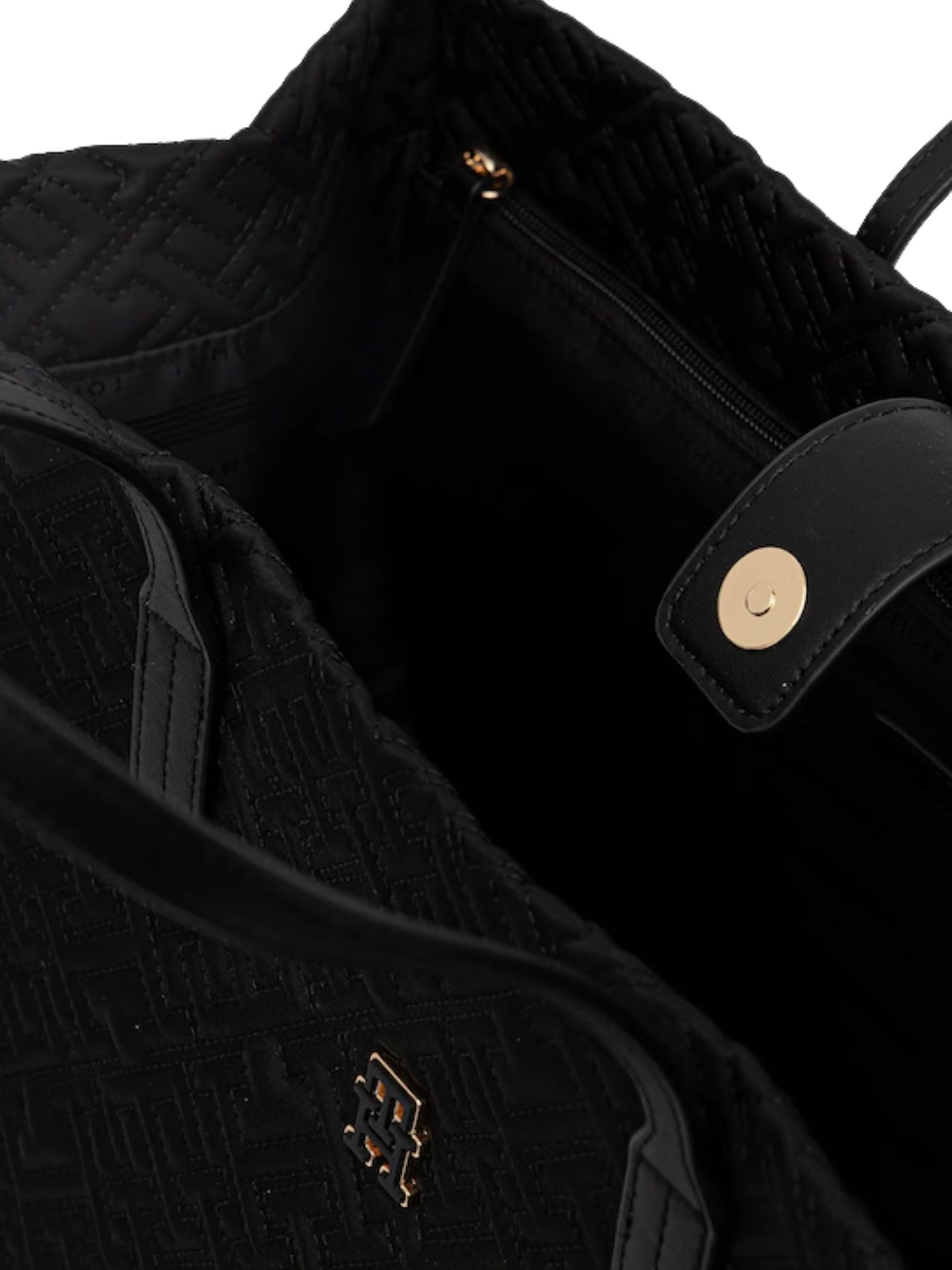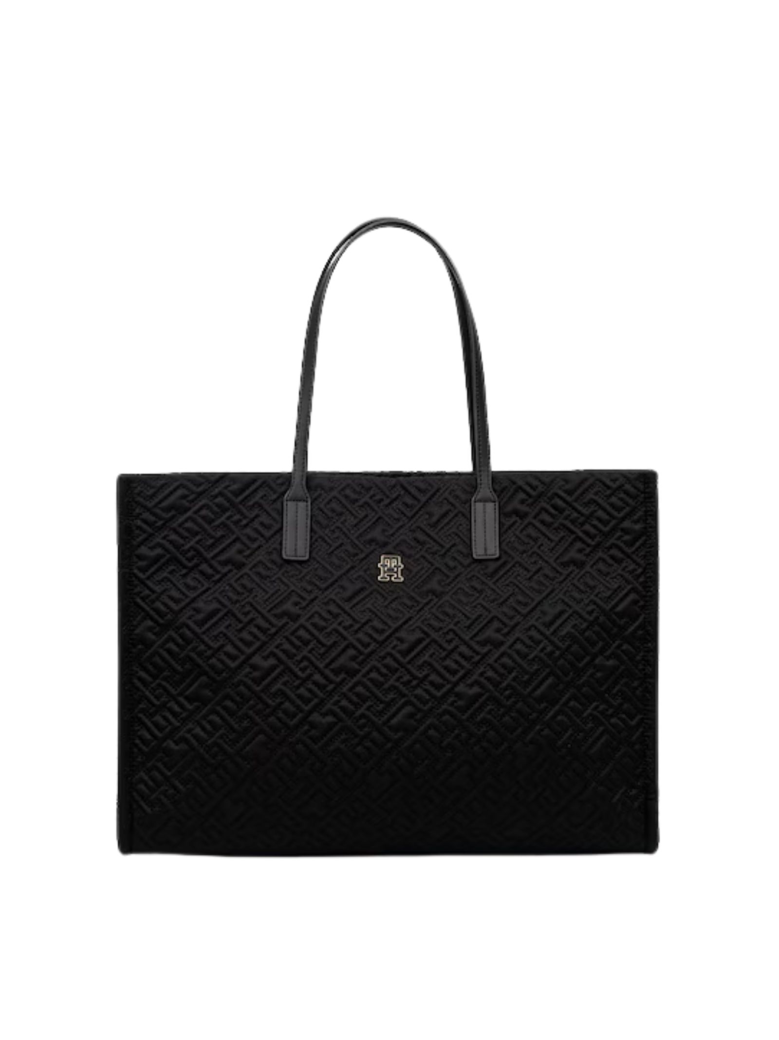 Spaziosa borsa tote in nylon lucido, caratterizzata dal motivo con monogrammi TH in rilievo all over, ideale per i tuoi look quotidiani. Ha chiusura magnetica, due manici, uno scomparto principale e una tasca interna con zip. Sul davanti, placchetta con monogramma TH e branding Tommy Hilfiger. Dimensioni: 43 x 17,5 x 31 cm, capacità 23 l. Composizione: 100% nylon.