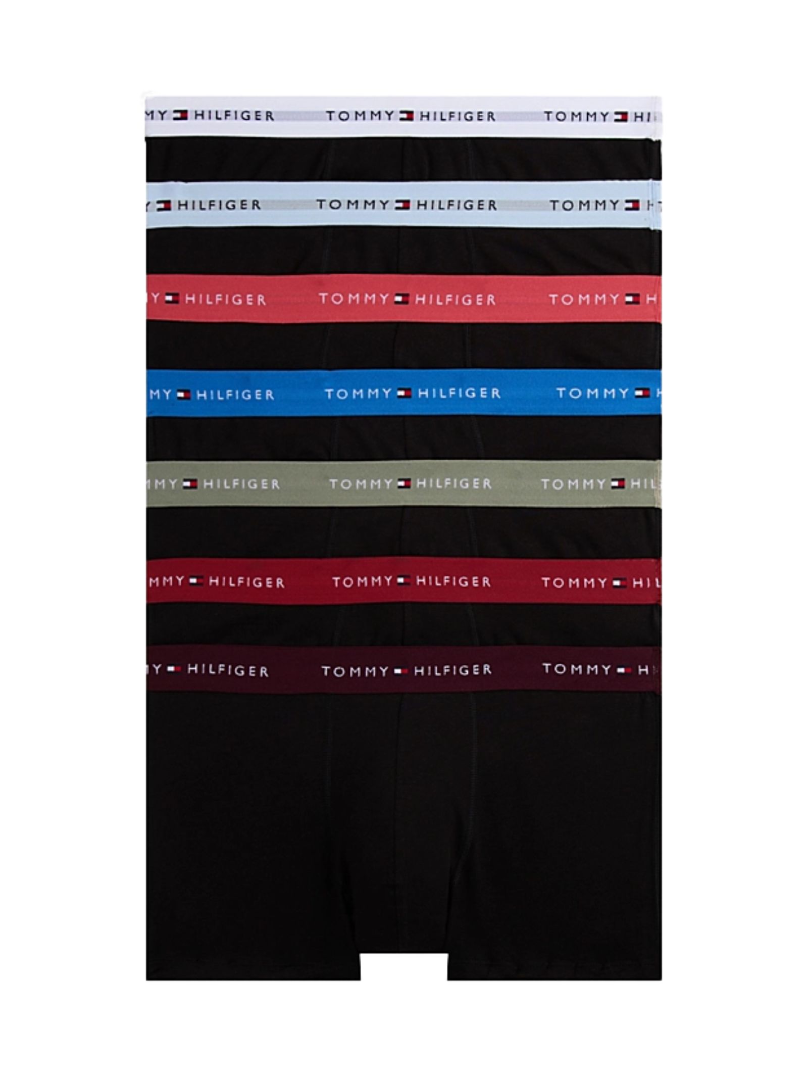 Set da 7 boxer aderenti Tommy Hilfiger in cotone stretch traspirante con proprietà antiumidità, elastico in vita con logo ripetuto e branding; realizzati in 95% cotone e 5% elastan.