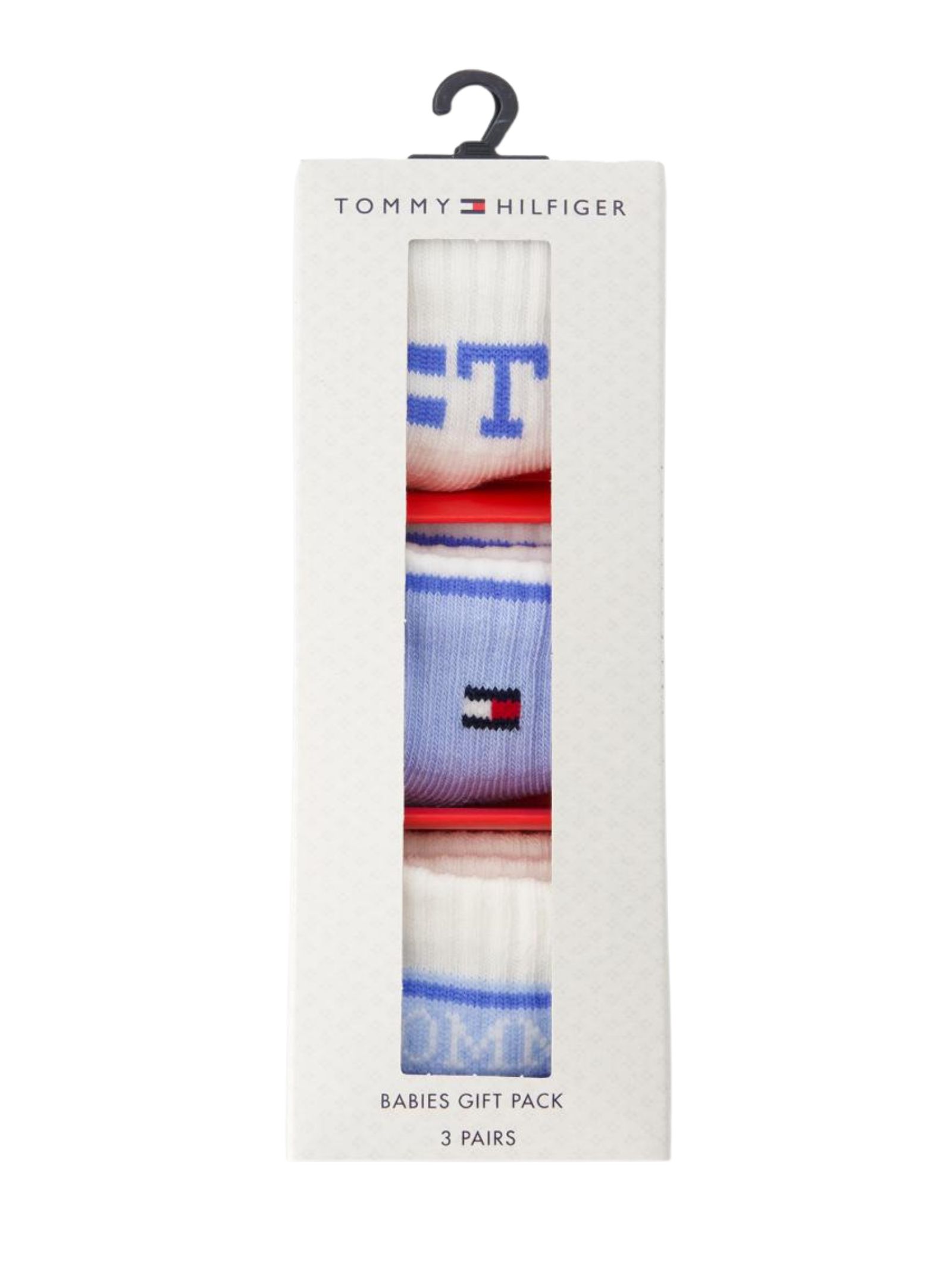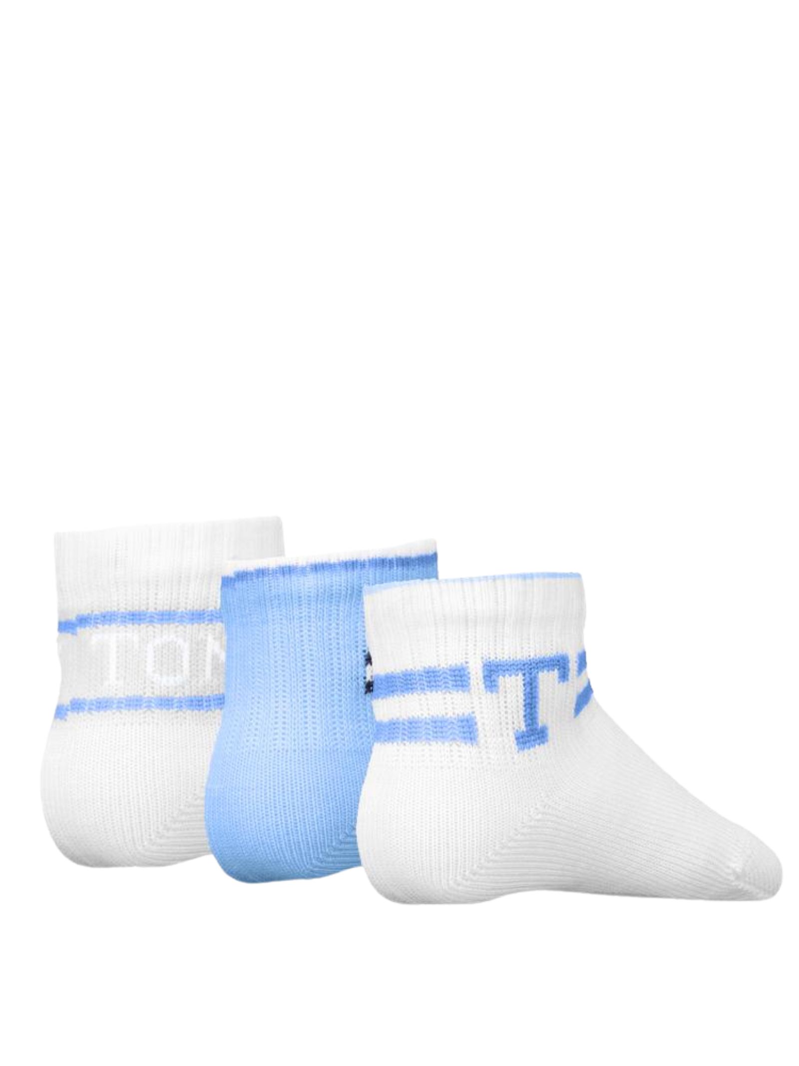 Calzini da bambino, gift box da tre paia. Colorazione celeste e azzurra. Materiale: 77% cotone, 22% poliammide, 1% elastan