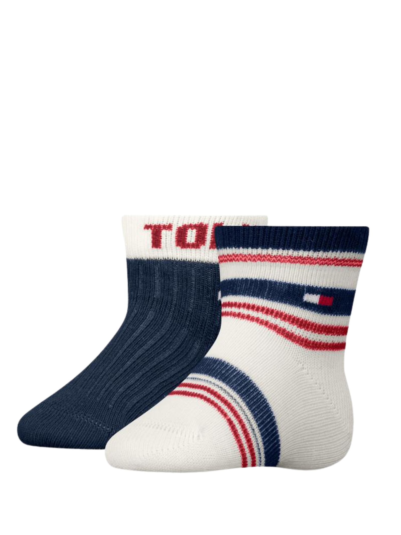 Set di due paia di calzini da bambino realizzati in morbido tessuto elasticizzato per offrire comfort e resistenza quotidiana. Composizione: 77% cotone, 22% poliammide, 1% elastan.