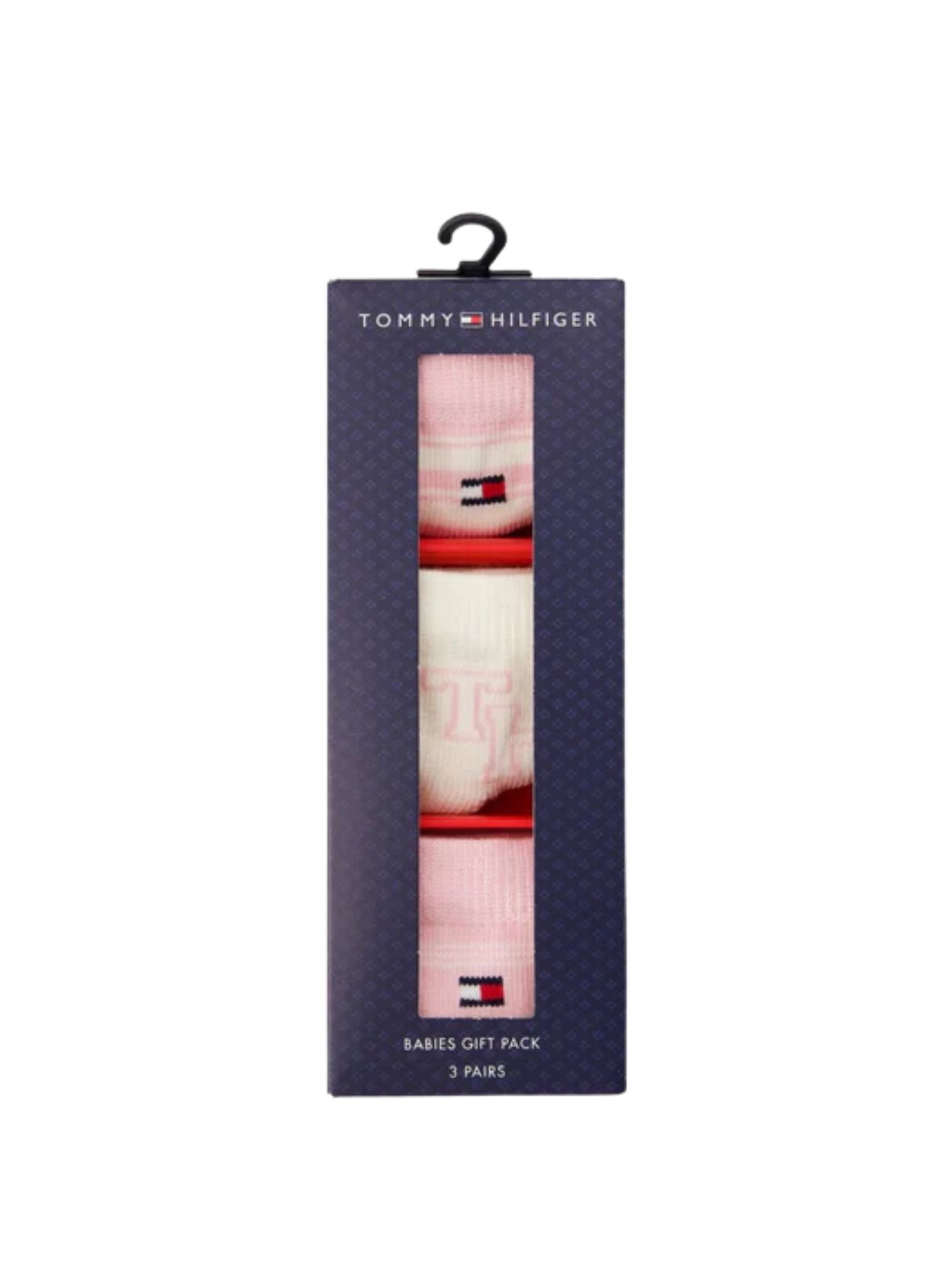 Set di tre paia di calzini da bambino Tommy Hilfiger in morbida miscela di cotone elasticizzato, con punta e tallone rinforzati per maggiore durata e comfort. Design a cucitura singola e logo del brand. Presentati in unelegante scatola regalo. Composizione: 77% cotone, 22% poliammide, 1% elastan.