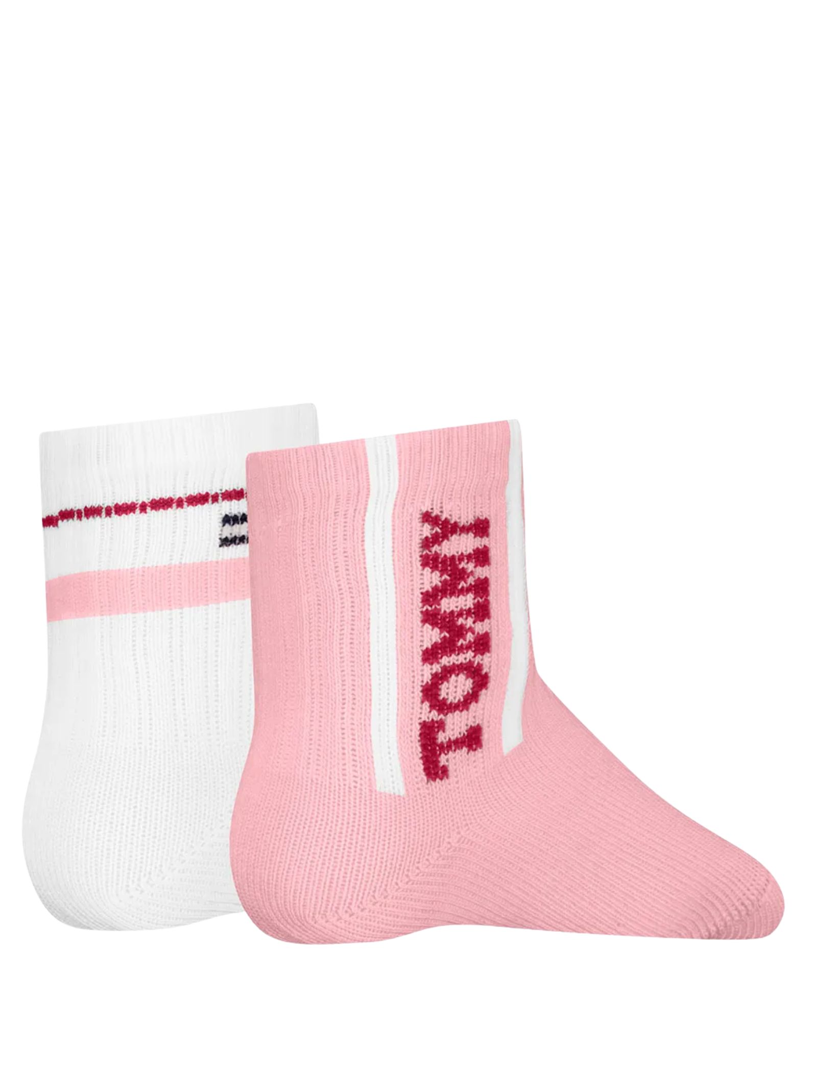 Calzini da bambina, confezione da 2 paia. Colorazione rosa e bianco. Materiale: 77% cotone, 22% poliammide, 1% elastan