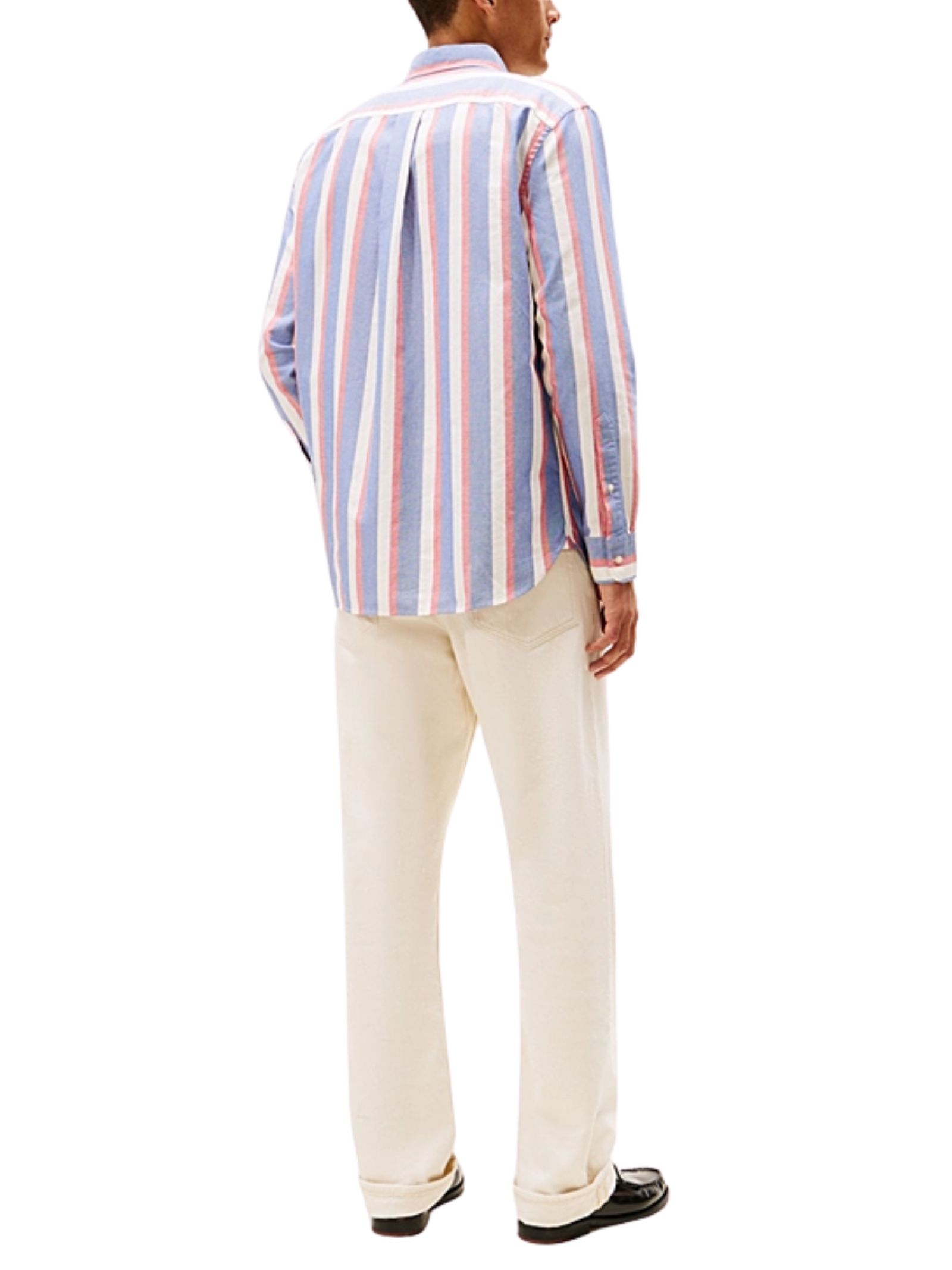 Camicia in puro cotone Oxford a righe verticali, con colletto button down, polsini arrotondati con bottone, tasca applicata sul petto, piega centrale sul retro e dettagli iconici Tommy Hilfiger con nastro interno al collo e bandierina ricamata sulla tasca, dal fit relaxed per un comfort quotidiano. 100% cotone.
