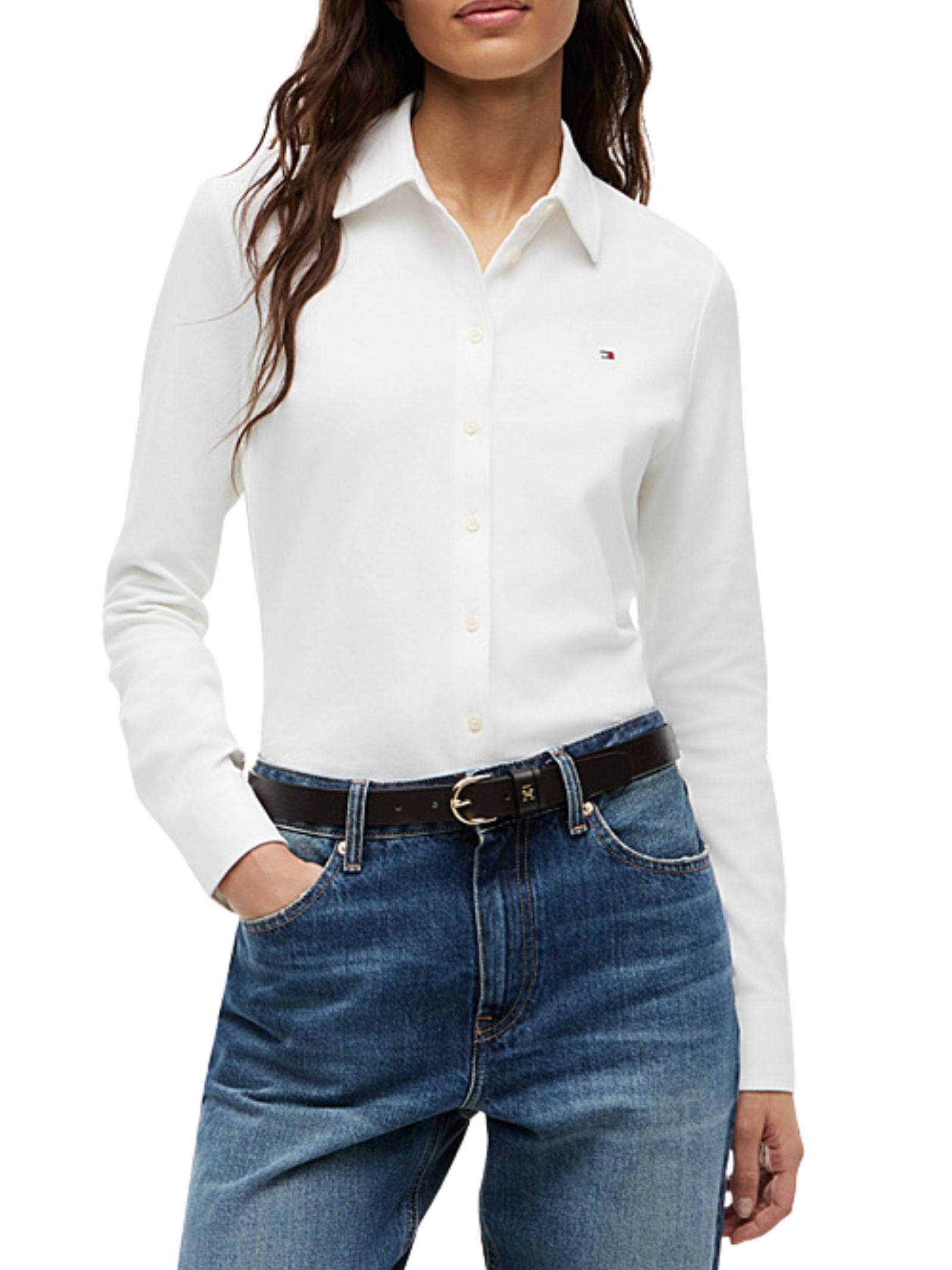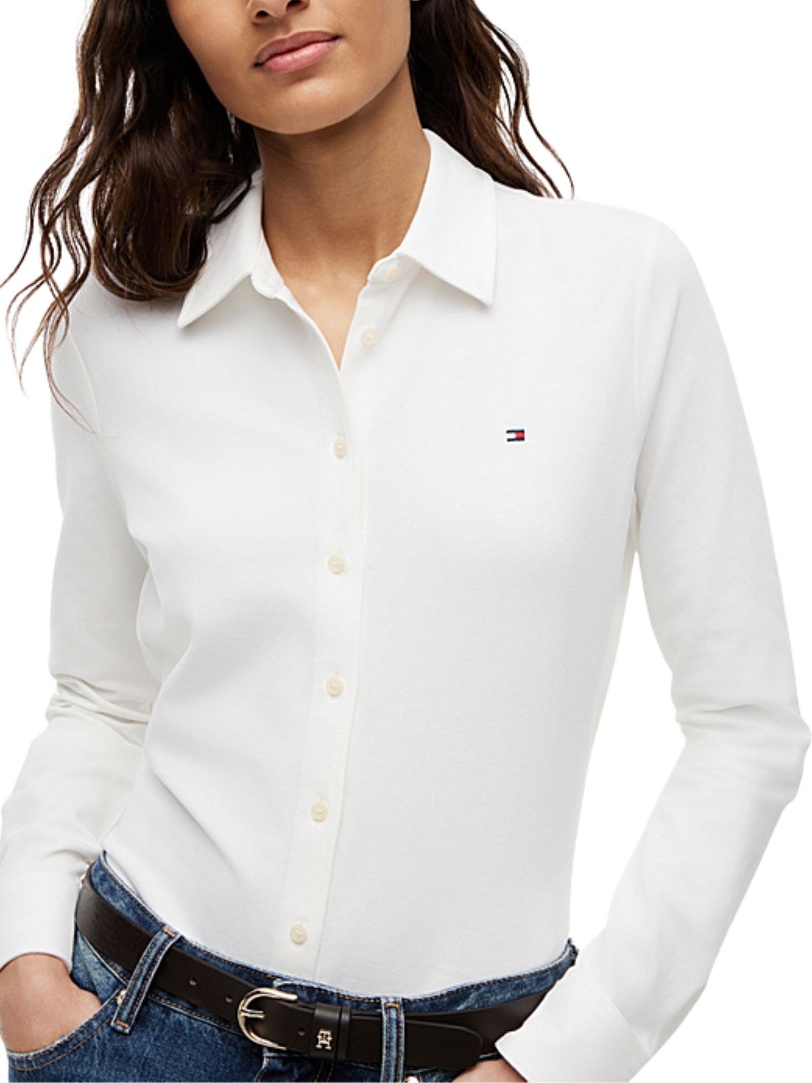 Camicia slim fit in piqué di cotone stretch ispirata alla polo classica, con texture raffinata e stile casual, colletto semifrancese, polsini con bottone, nastro iconico all'interno del collo, branding Tommy Hilfiger e bandierina ricamata sul petto. Composizione: 96% cotone, 4% elastan.