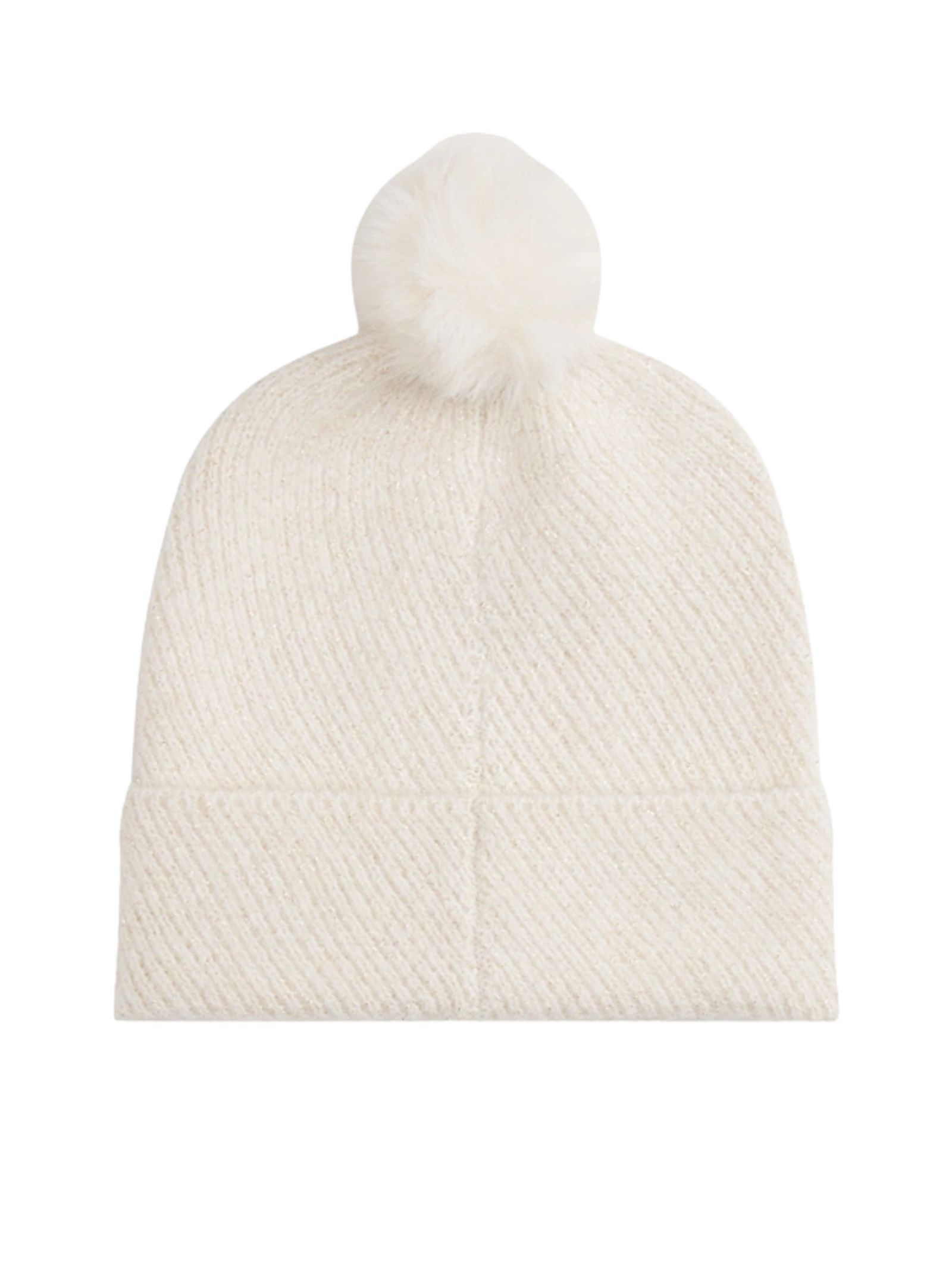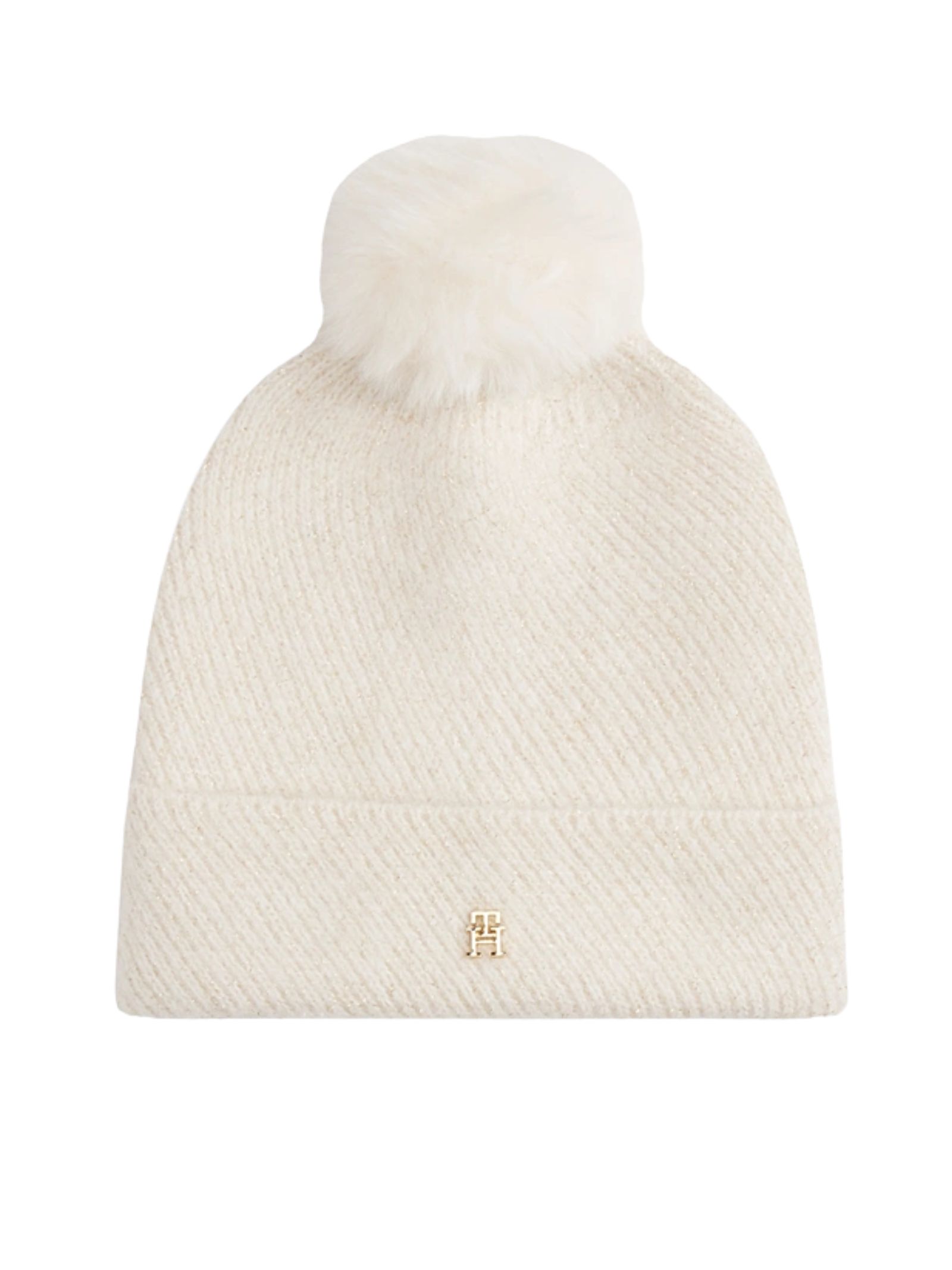 Berretto in maglia realizzato in misto lana stretch, arricchito da fili metallizzati intrecciati e da un vivace pompon che dona un tocco di brillantezza. La finitura a coste all over e il bordo risvoltato assicurano comfort e calore, mentre la placchetta con monogramma TH sul bordo e il branding Tommy Hilfiger completano il design. Dimensioni: 24 x 19 cm. Composizione: 55% poliestere, 18% lana, 15% alpaca, 9% nylon, 3% elastan.
