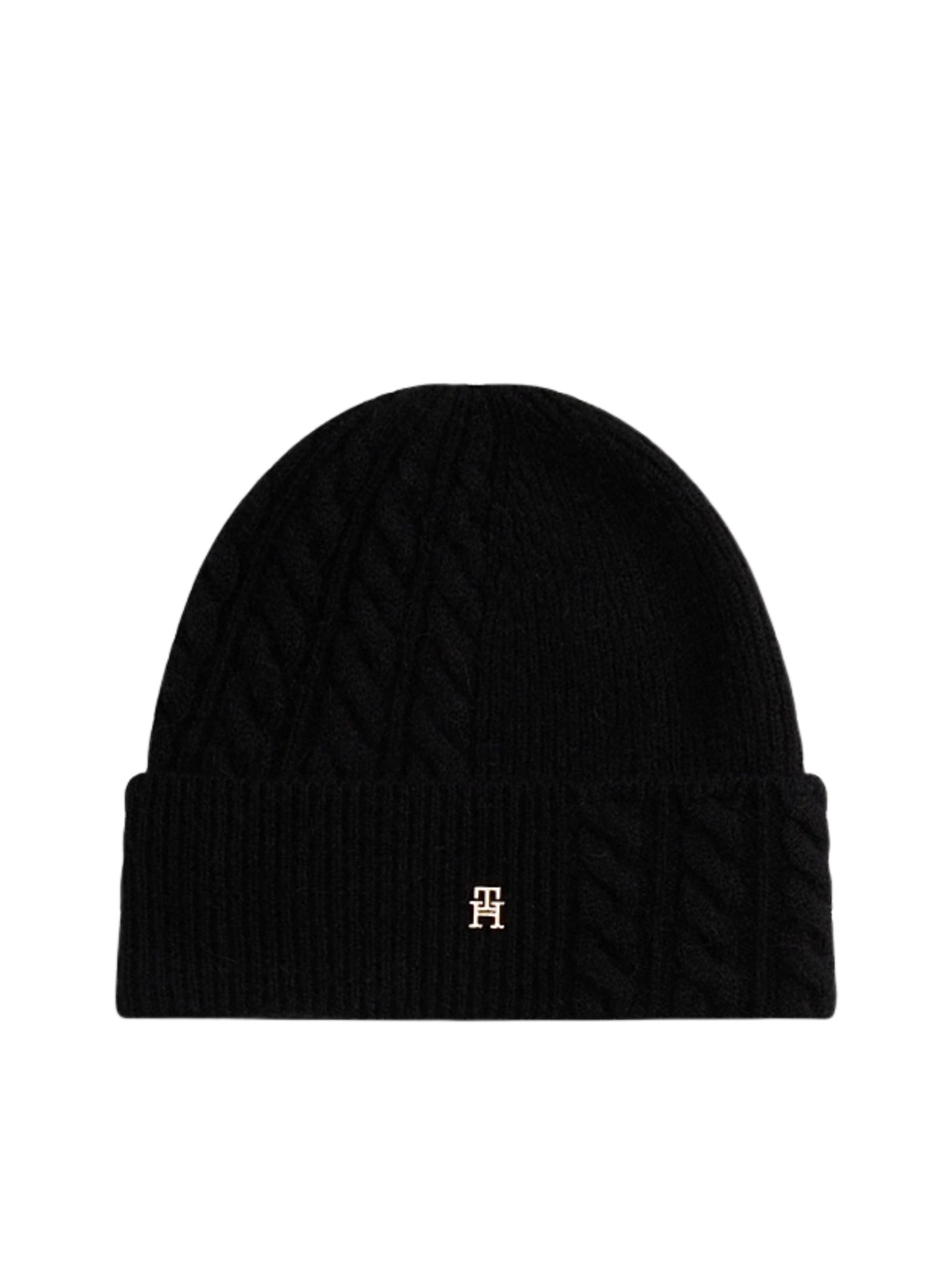 Berretto morbido realizzato in misto lana stretch, impreziosito da una raffinata placchetta con monogramma TH sul bordo risvoltato. Presenta maglia a coste con lavorazione intrecciata e dettagli di branding Tommy Hilfiger. Dimensioni: 25 x 21 cm. Composizione: 57% poliestere, 18% lana, 17% nylon, 5% alpaca, 3% elastan.