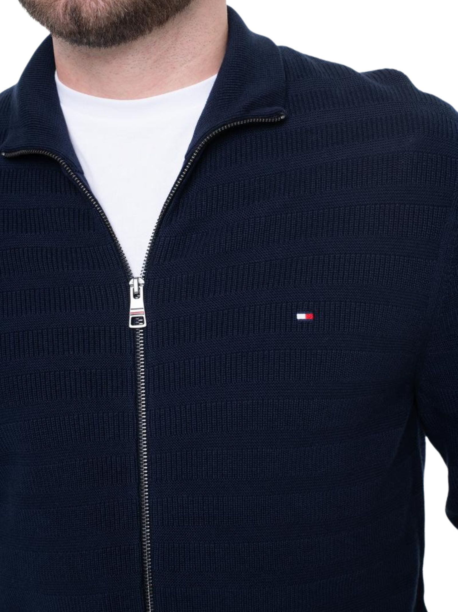 Cardigan Tommy Hilfiger con zip e lavorazione a righe. 100%cotone