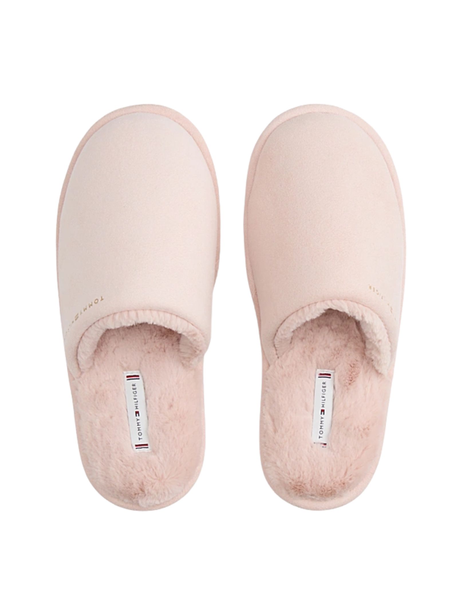 Ciabatte Tommy Hilfiger in microsuede con logo. Interno in pelliccia caldo e comodo. Composizione 88% poliestere, 12% elastan