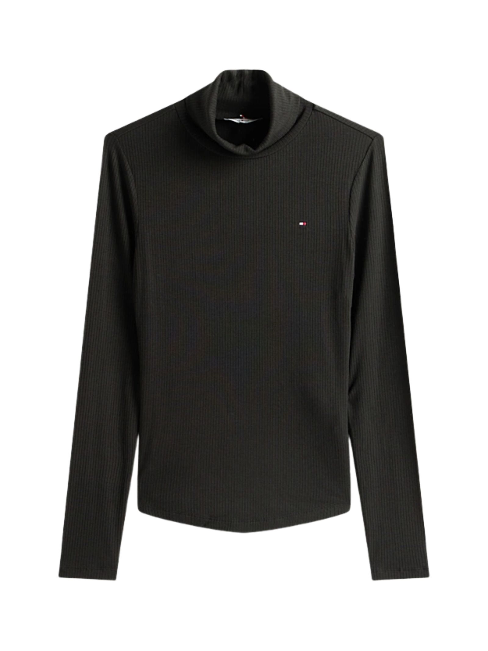 Dolcevita Tommy Hilfiger maniche lunghe a coste in viscosa. Vestibilità slim fit. Composizione Viscosa 95% Elastan 5%