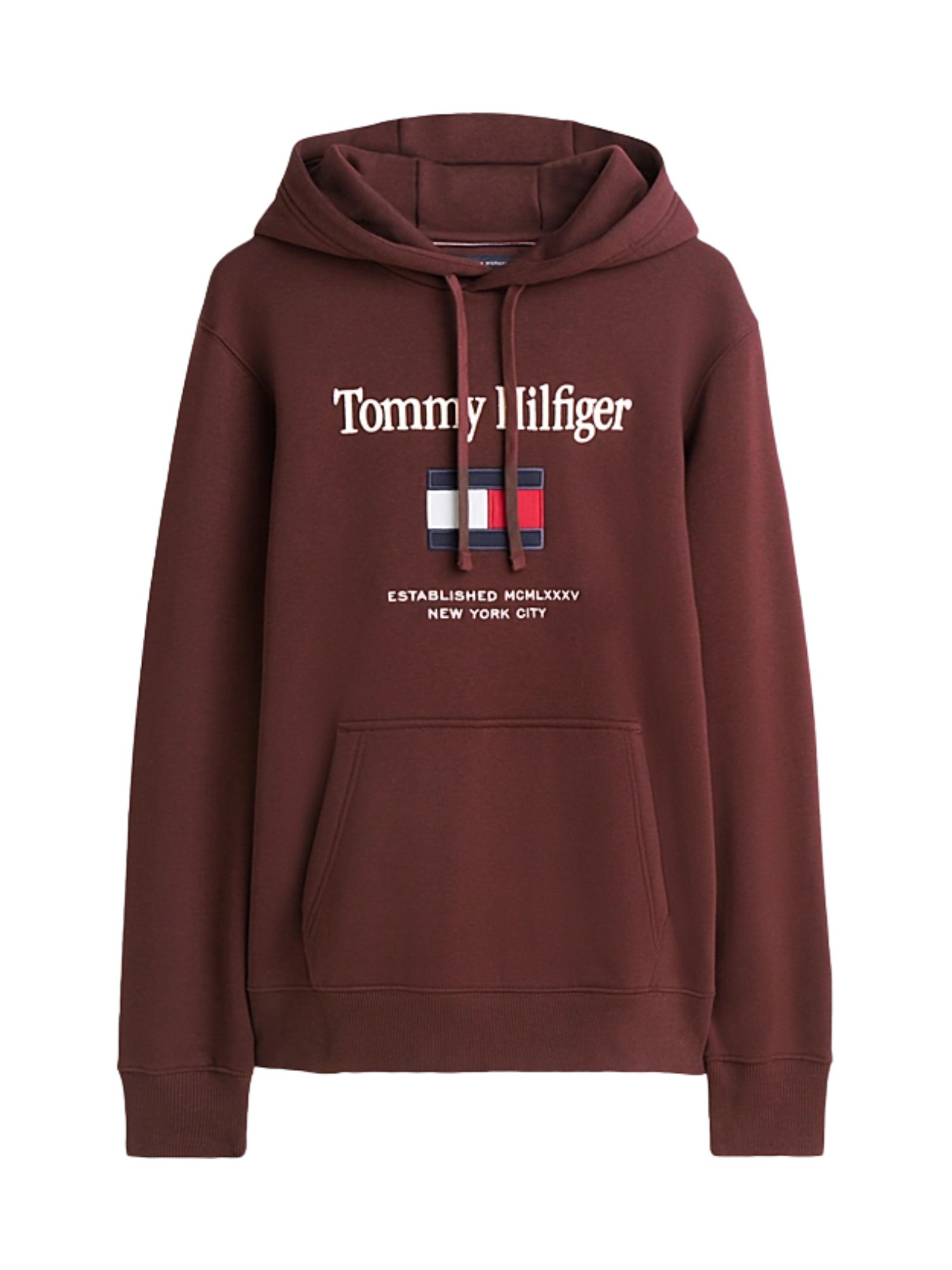 Felpa con cappuccio in tessuto felpato di misto cotone stretch, ampia e confortevole, con vestibilità regular fit e spalle leggermente scese, cappuccio con lacci, tasca a marsupio, fondo e polsini a coste, nastro iconico interno al collo e logo Tommy Hilfiger NYC ricamato sul petto per un look casual contemporaneo. Composizione: 64% cotone, 36% poliestere.