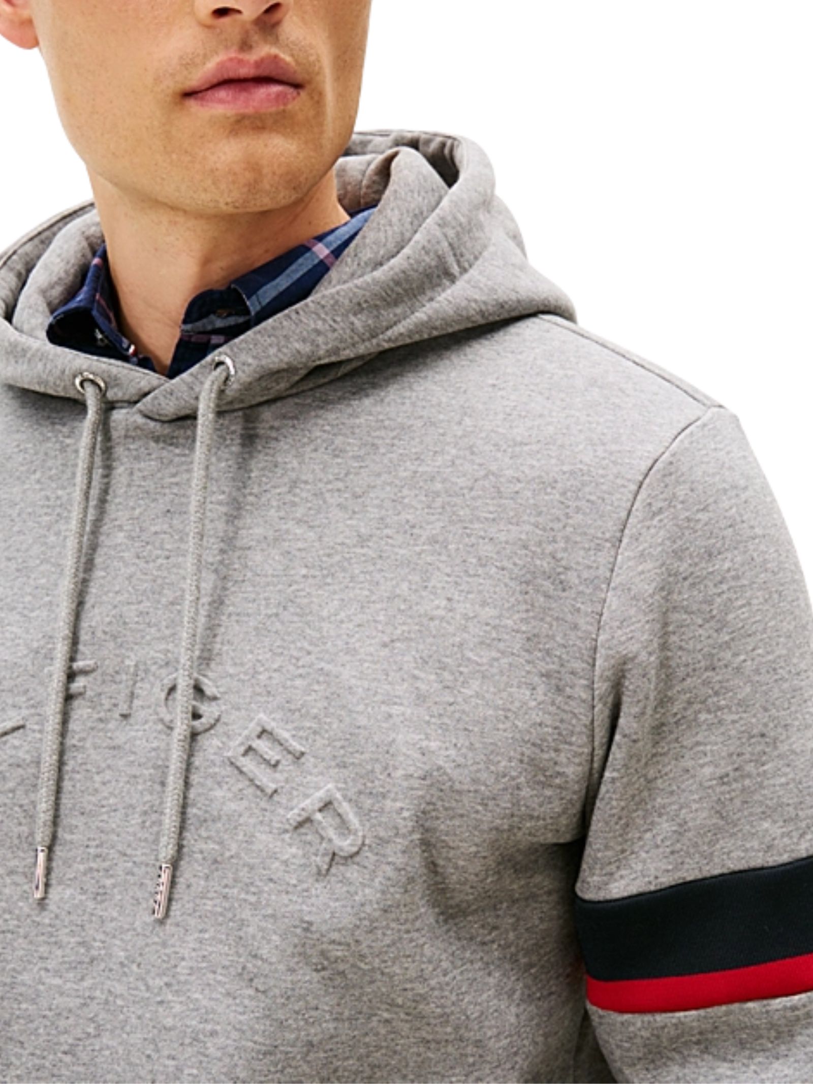 Felpa con cappuccio in misto cotone stretch con tessuto felpato flex, collo con cappuccio e lacci, tasche a filetto, motivo color block sulla manica, logo e branding Tommy Hilfiger, bandierina ricamata; regular fit, 64% cotone e 36% poliestere.