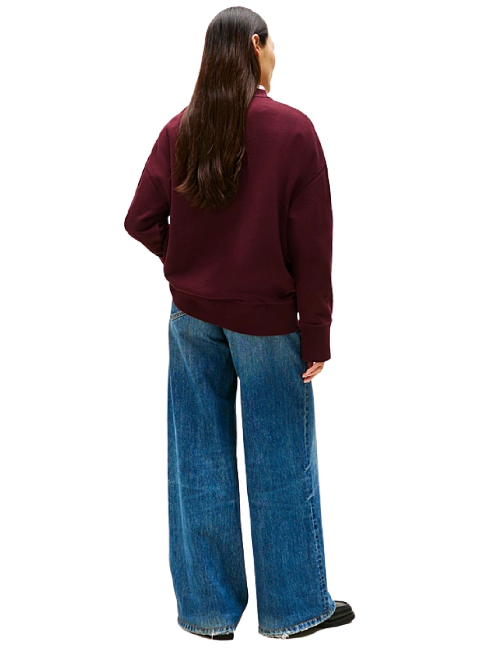 Felpa in morbida spugna di puro cotone con girocollo, nastro iconico sul retro, logo Tommy Hilfiger ricamato sul petto e bandierina sul polsino; relaxed fit, 100% cotone.