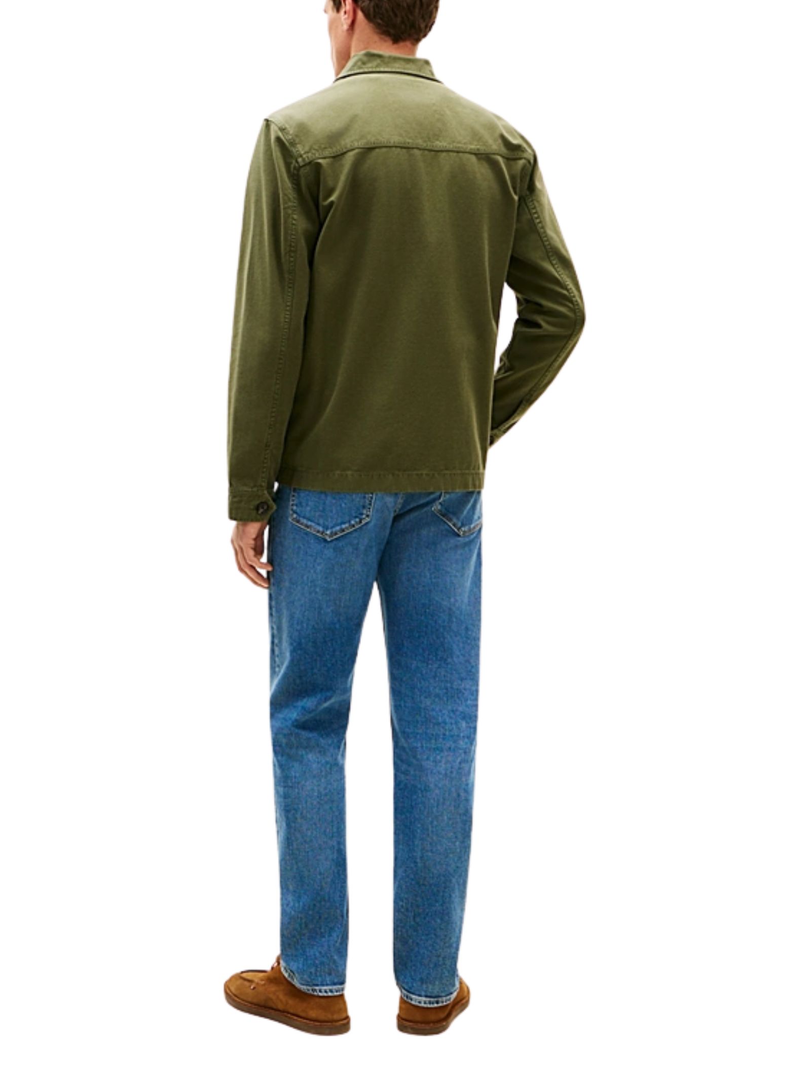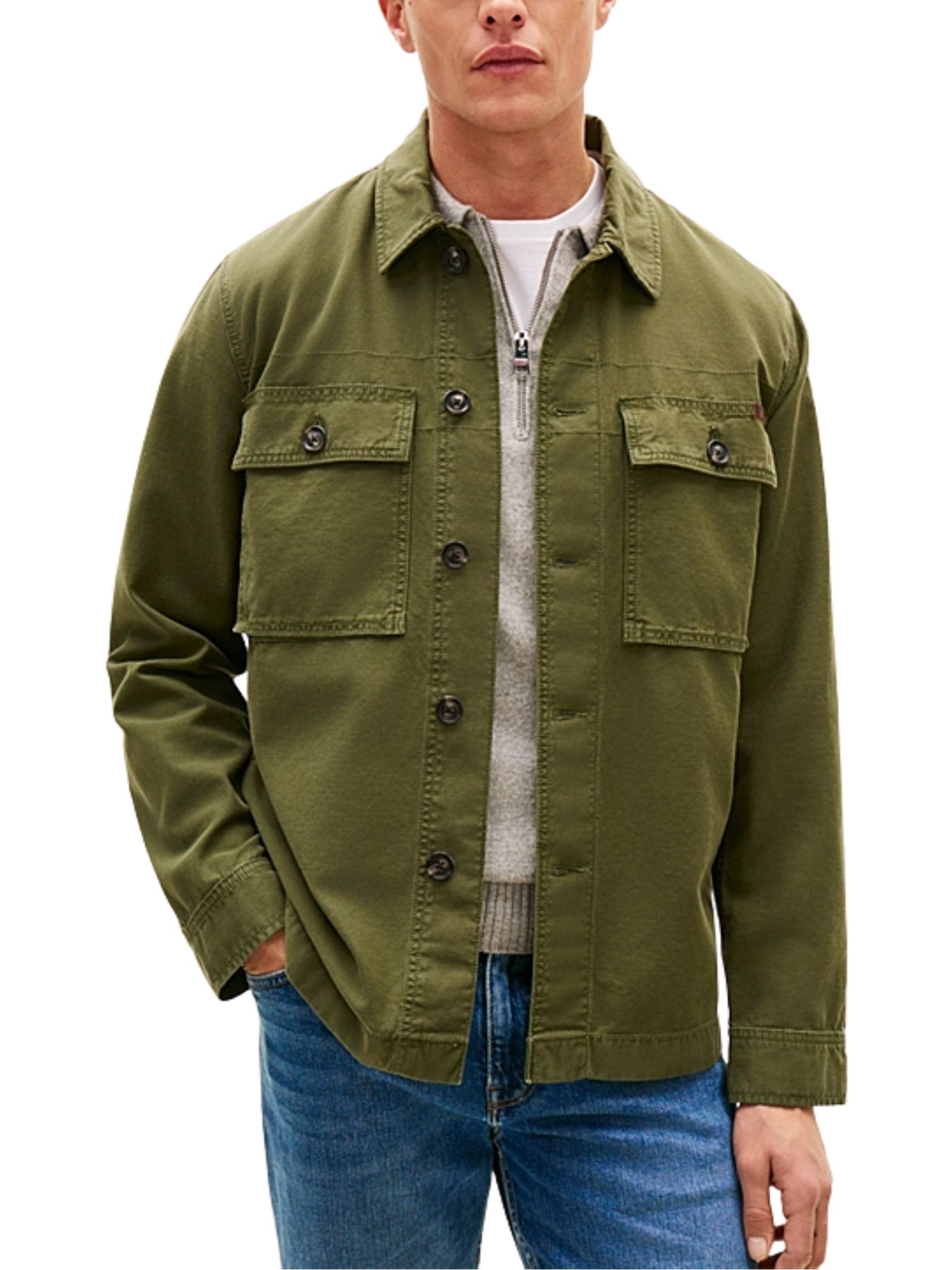 Giacca Tommy Hilfiger verde stile camicia di ispirazione streetwear realizzata in rasatello di cotone fiammato tinto in capo con effetto sbiadito e finitura leggermente lucida, caratterizzata da colletto semifrancese, tasche sul petto con patta e bottone, polsini regolabili e dettaglio logo, con vestibilità regolare. Composizione: 100% cotone.