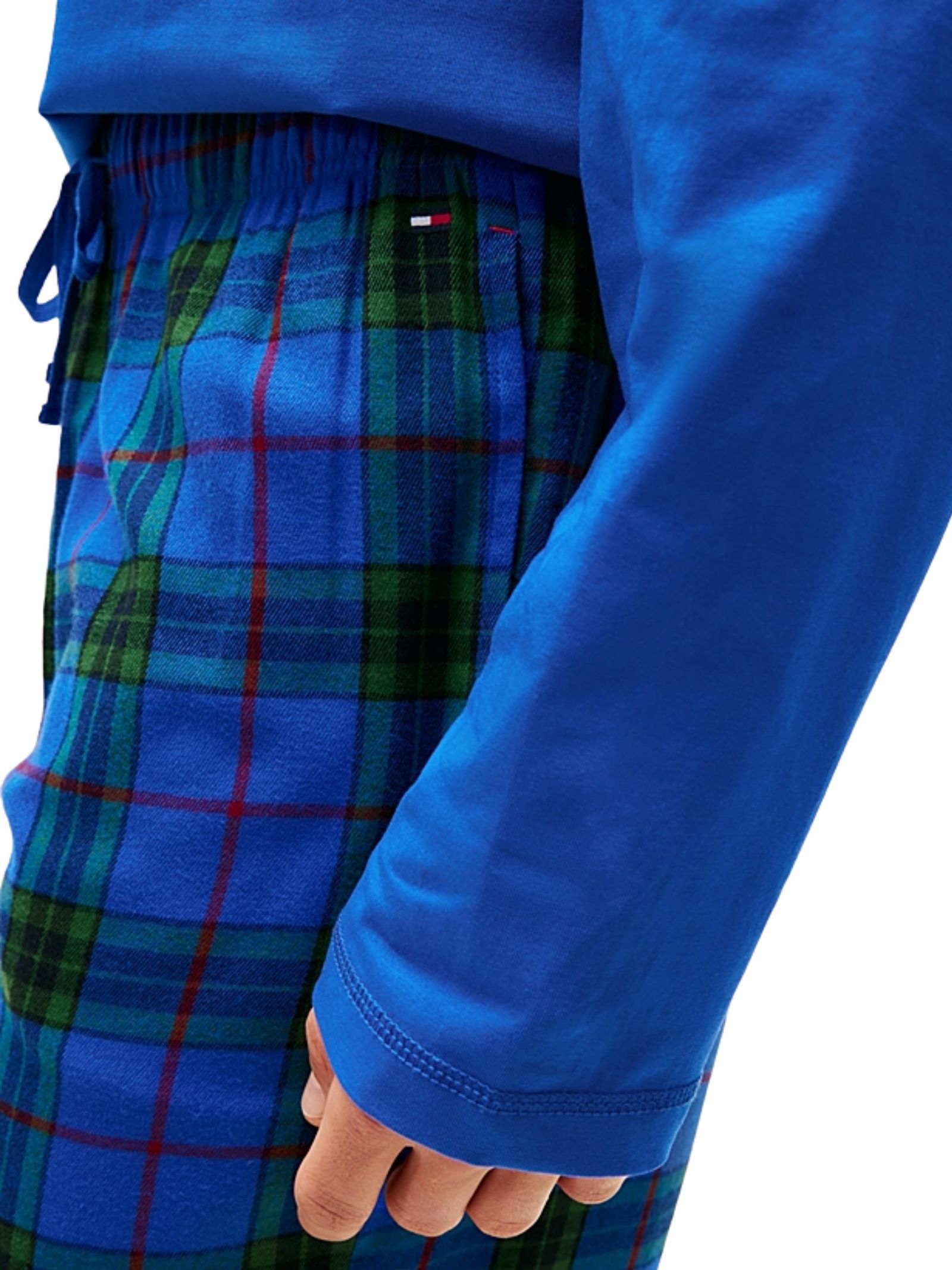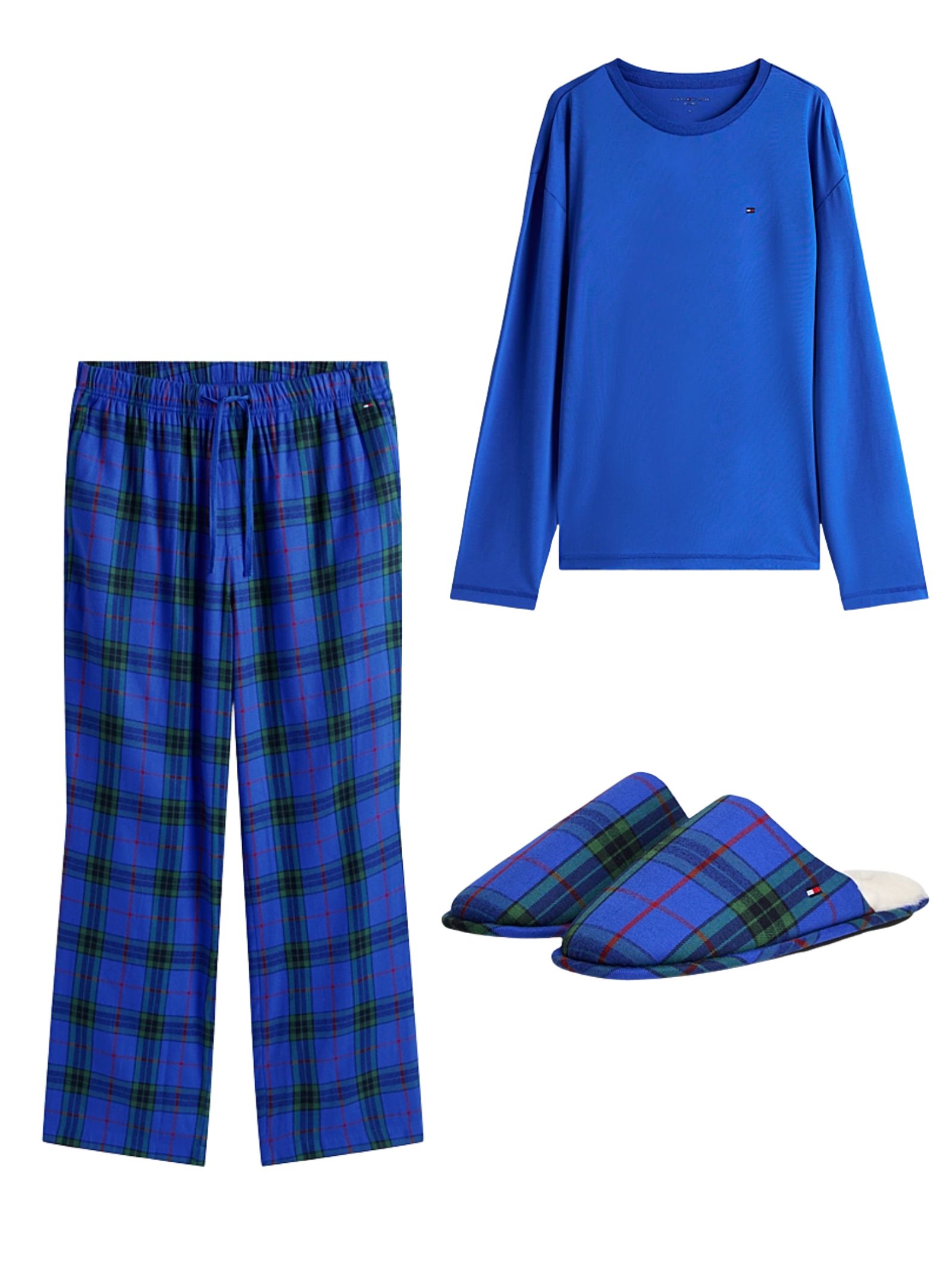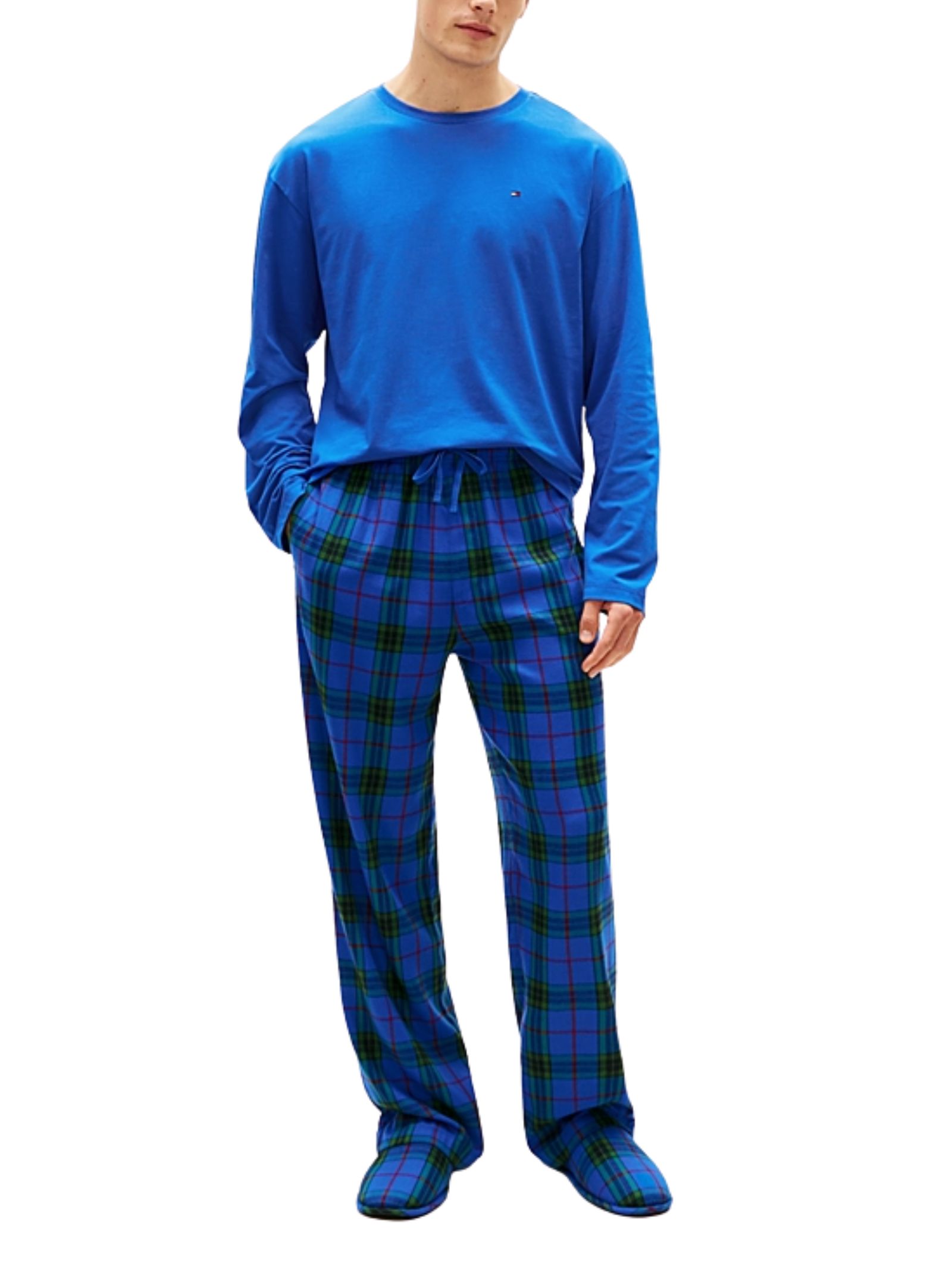 Pigiama in flanella di cotone stretch con confezione regalo inclusa. La parte superiore presenta girocollo e bandierina Tommy Hilfiger ricamata sul petto. I pantaloni sono dotati di elastico in vita con lacci e bandierina ricamata sul fianco. Le slippers, foderate in pelliccia sintetica, sono impreziosite dalla bandierina ricamata sullesterno. Composizione: 95% cotone, 5% elastan.