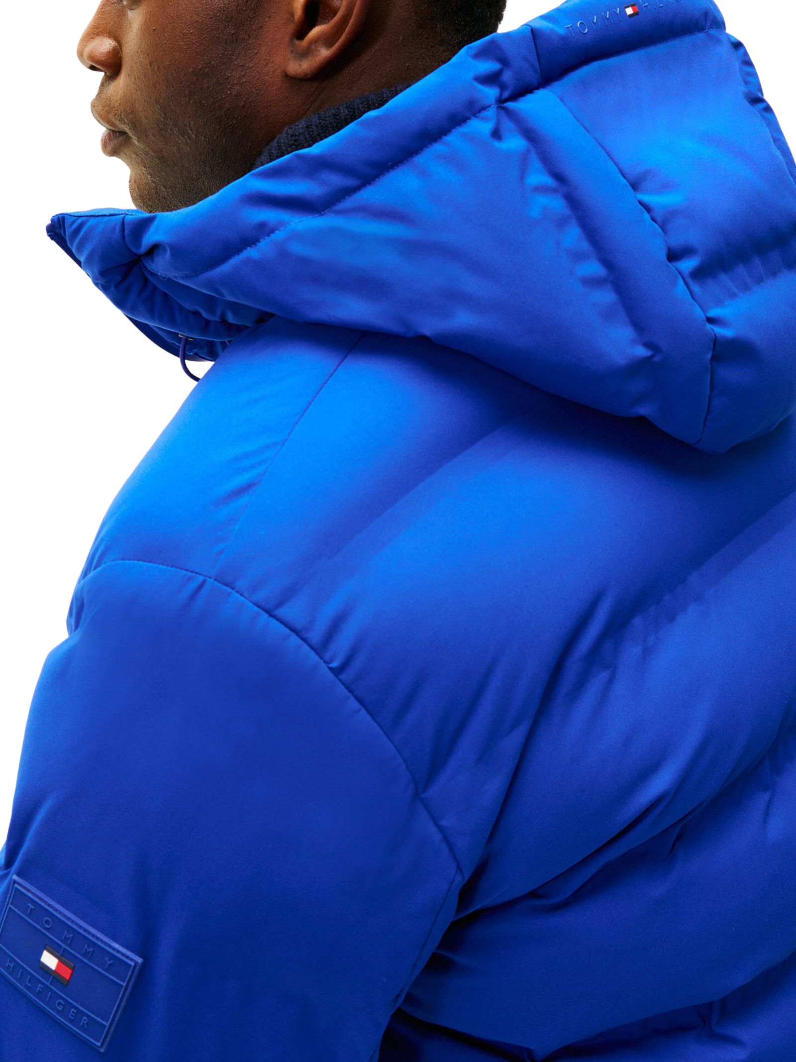 Giacca in tessuto tecnico impermeabile realizzata in parte con poliestere riciclato, progettata per garantire maggiore resistenza allacqua e comfort anche in condizioni meteo avverse (non completamente impermeabile). Presenta vestibilità regular, chiusura con zip a due vie, cappuccio con coulisse e orlo regolabile con fermagli. Dotata di due tasche laterali con zip e tasche interne a scivolo.