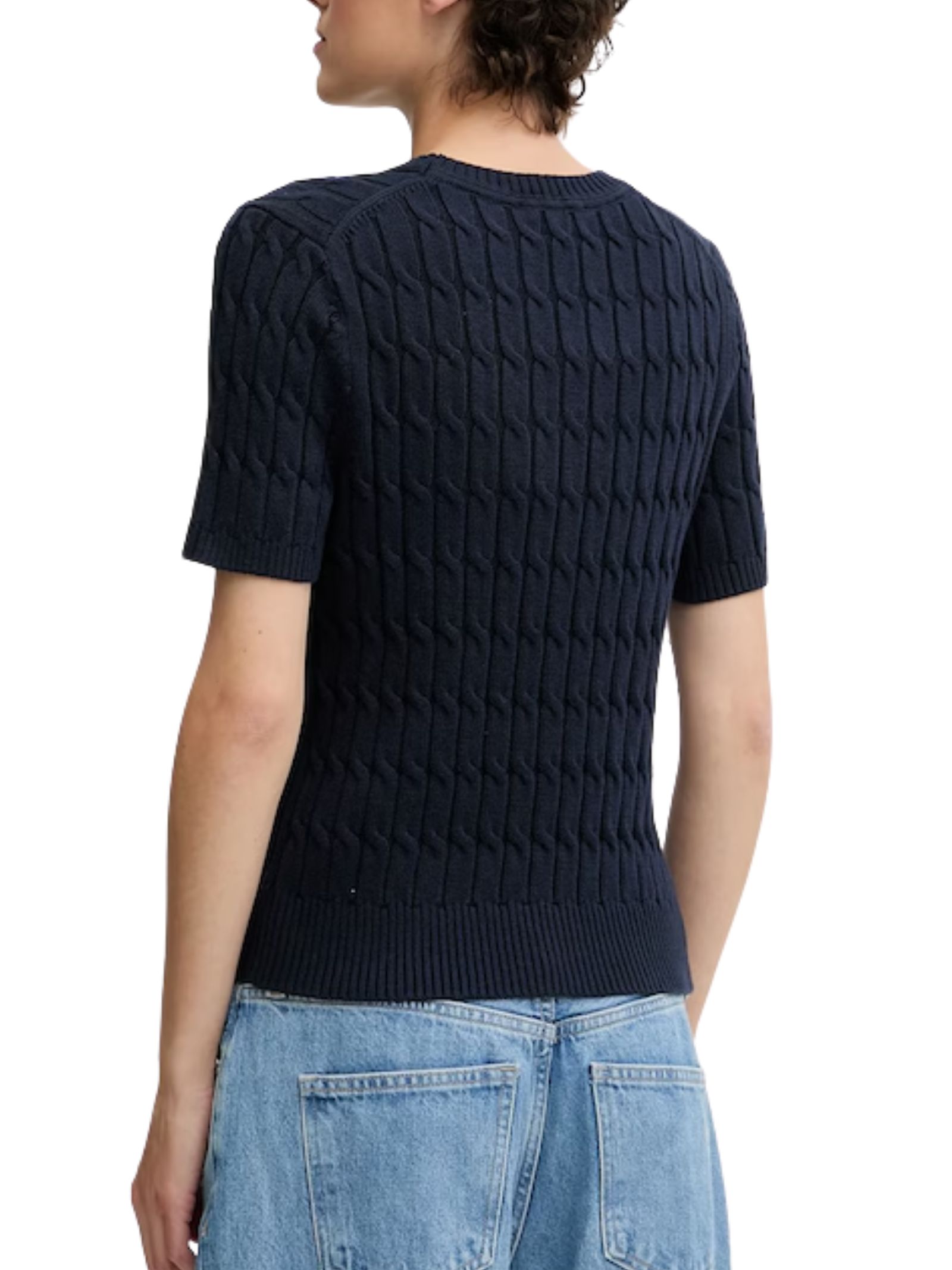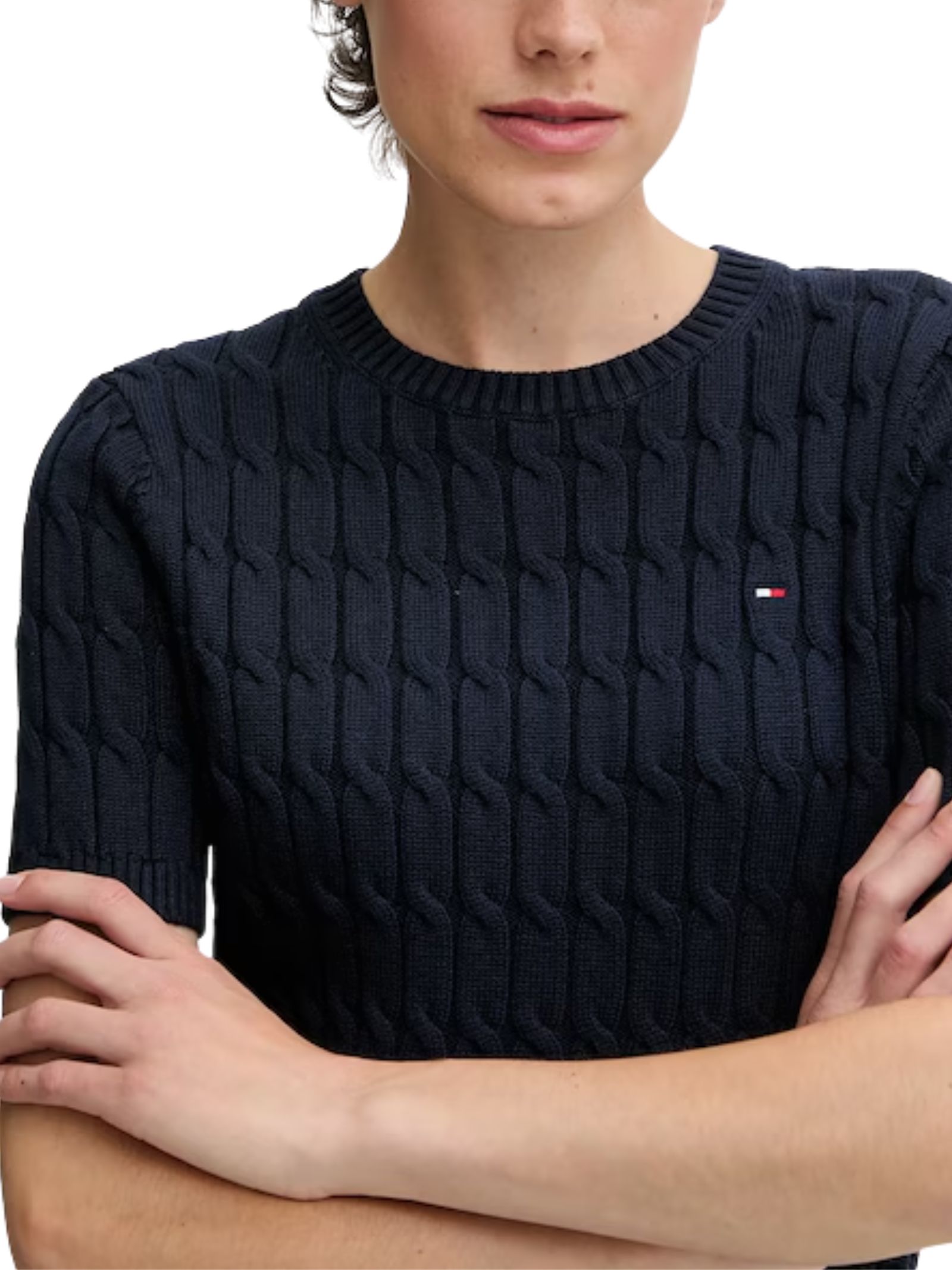 Maglia a trecce a maniche corte Tommy Hilfiger. Presenta un taglio dritto che assicura libertà di movimento, classico girocollo rotondo e maniche corte. 100% Cotone
