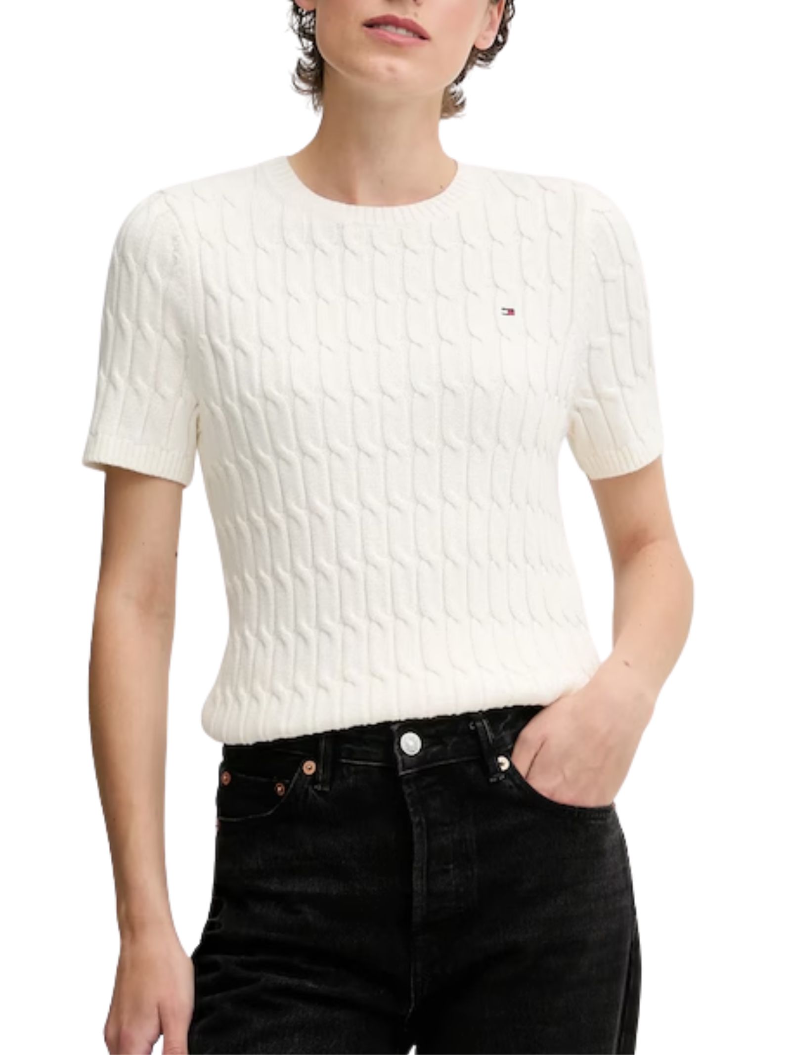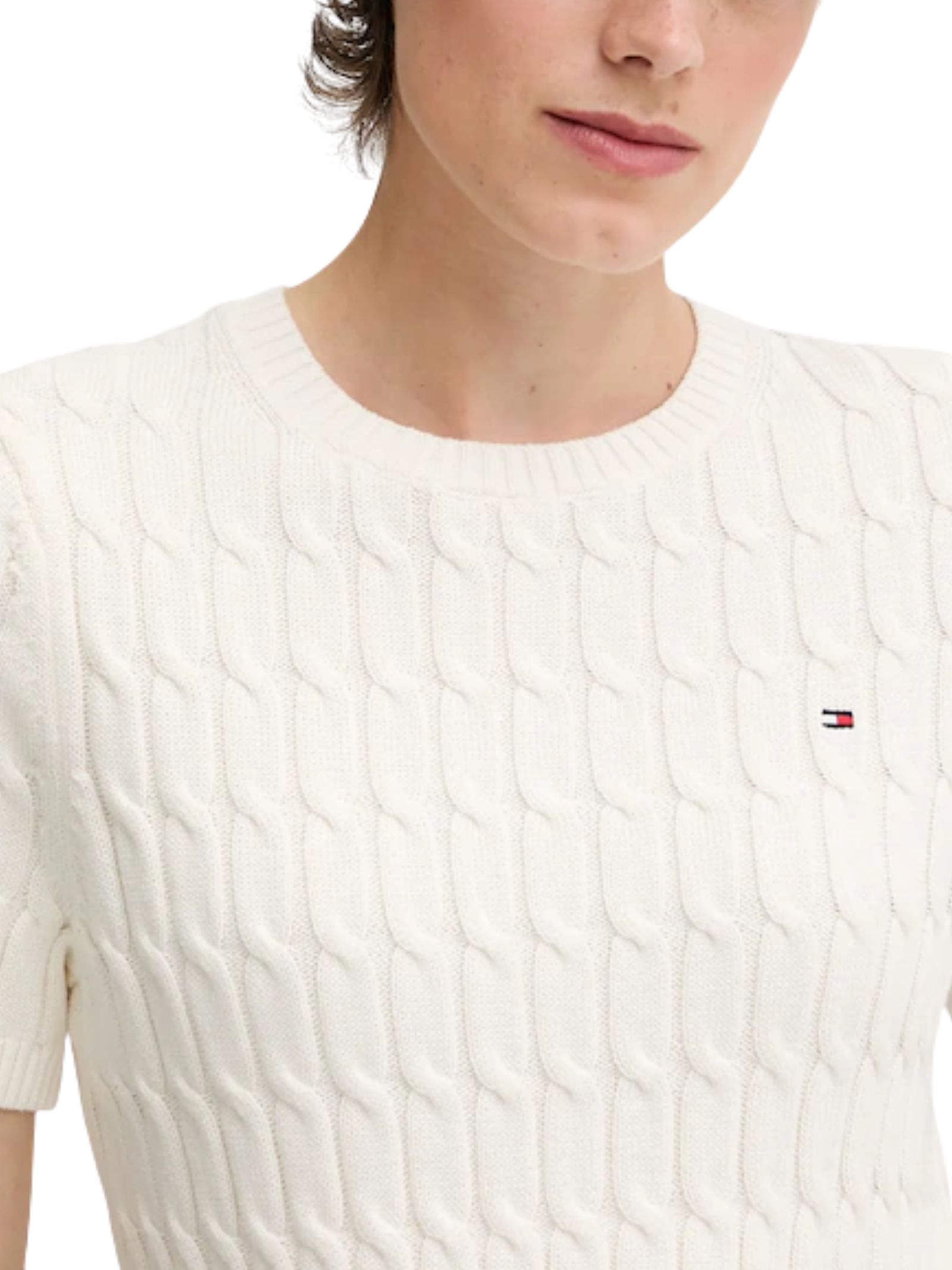 Maglia a trecce a maniche corte Tommy Hilfiger. Presenta un taglio dritto che assicura libertà di movimento, classico girocollo rotondo e maniche corte. 100% Cotone