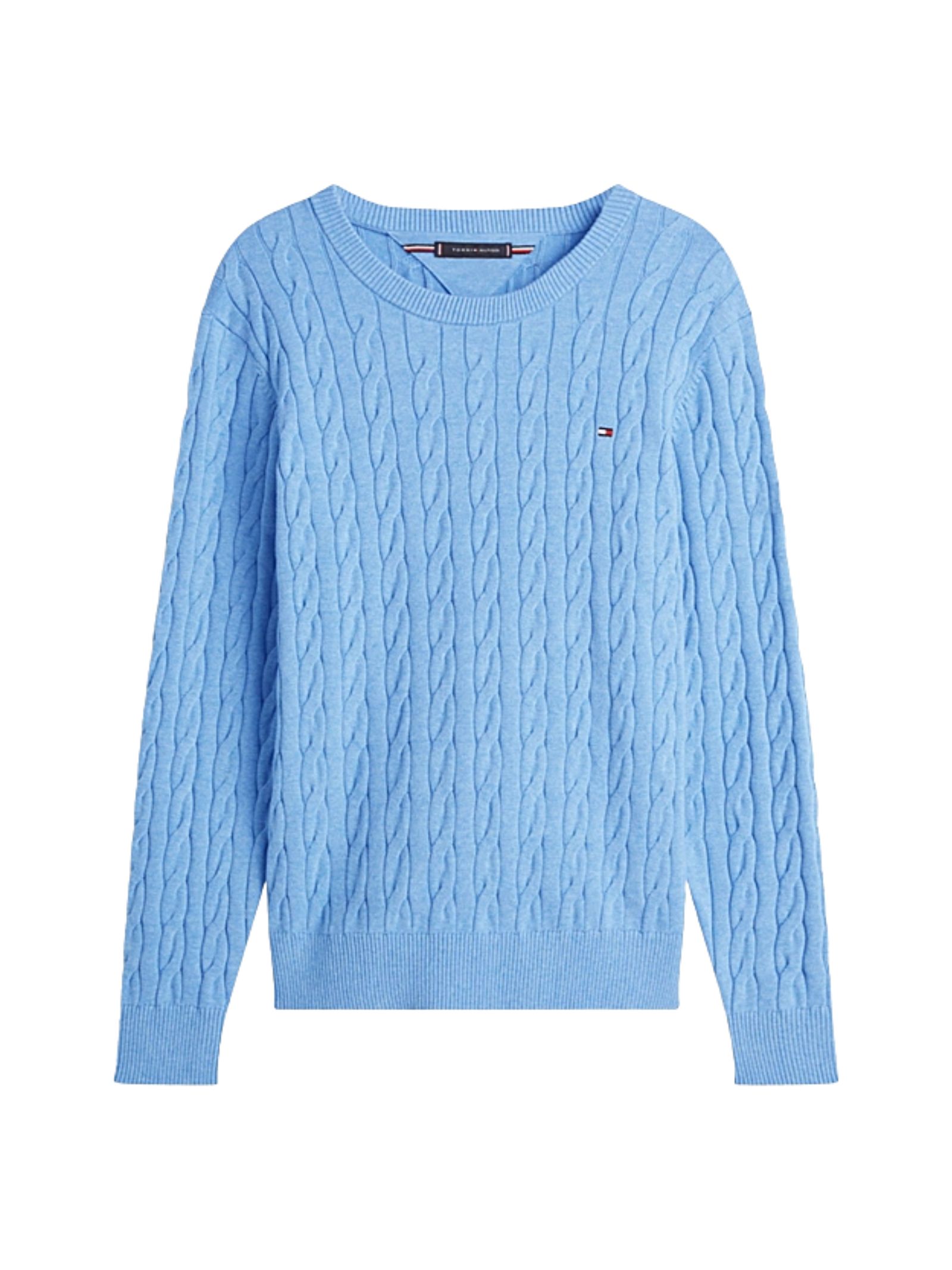 Maglioncino girocollo intrecciato all over, rifinito da colletto, polsini e fondo a coste, nastro iconico all'interno del collo e dettagli di branding Tommy Hilfiger con bandierina ricamata sul petto, caratterizzato da una vestibilità regular fit; composizione: 100% cotone.