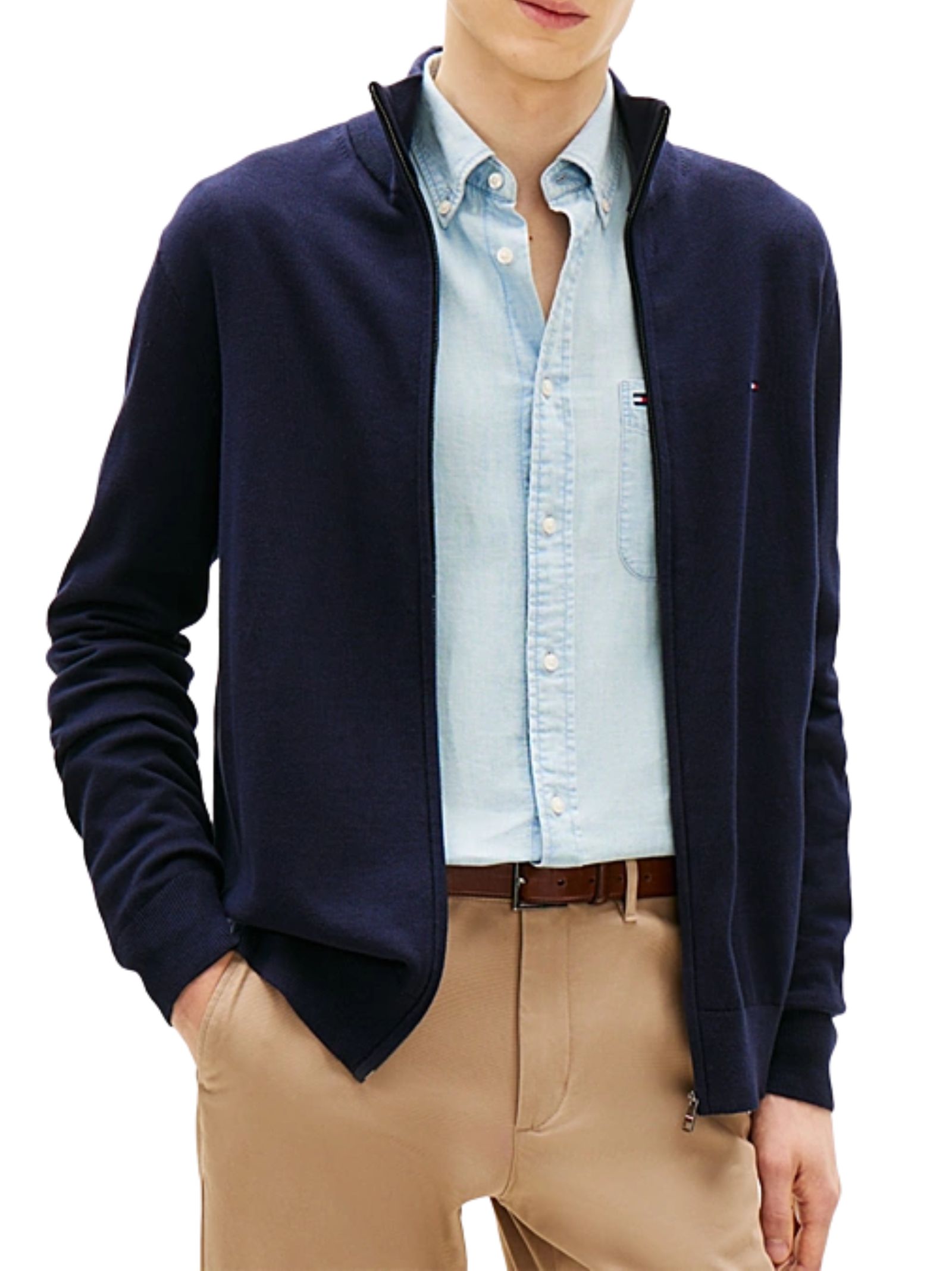 Maglioncino con zip integrale realizzata in puro cotone pettinato, morbida e vellutata al tatto, con collo a lupetto, colletto polsini e fondo a coste, branding Tommy Hilfiger e bandierina ricamata sul petto, dalla vestibilità regular ideale per un look casual e curato. Composizione: 100% cotone.