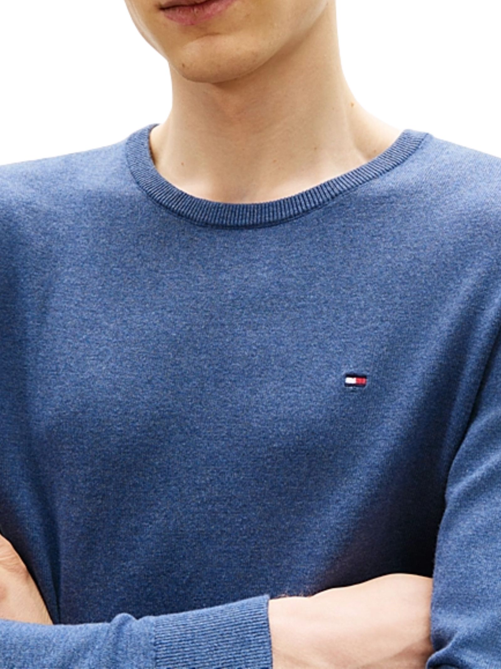 Maglioncino in puro cotone pettinato ideale per le giornate più fresche, da indossare da solo o in un look a strati, con girocollo, colletto polsini e fondo a coste, nastro iconico allinterno del collo, branding Tommy Hilfiger e bandierina ricamata sul petto, dalla vestibilità regular con spalle scese. Composizione: 100% cotone.