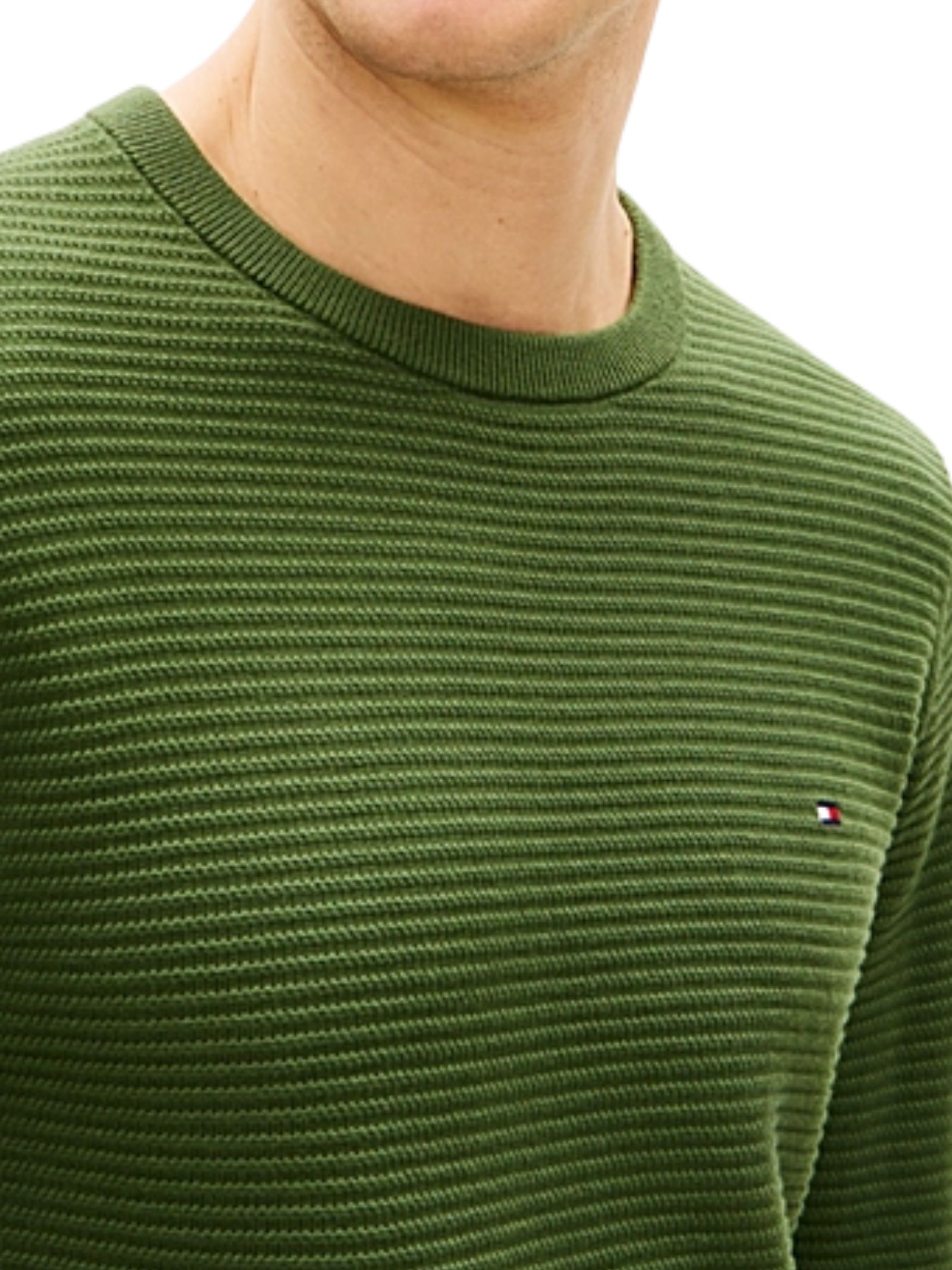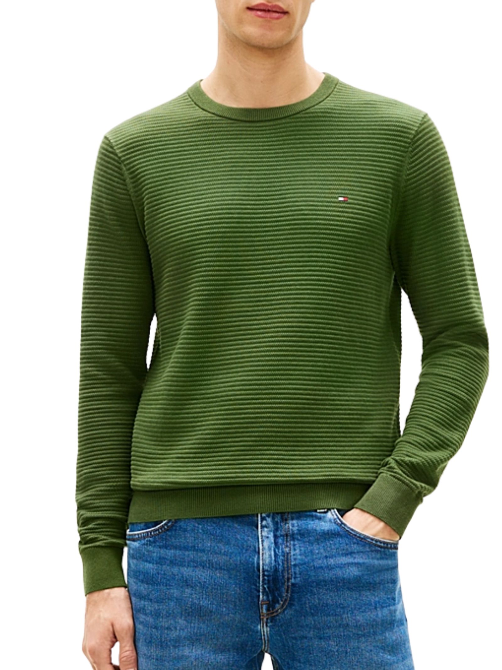 Maglioncino in puro cotone pettinato caratterizzato da lavorazione a maglia tramata, con girocollo, collo polsini e fondo a coste, nastro iconico allinterno del collo e bandierina ricamata sul petto, dalla vestibilità regular con spalle leggermente scese. Composizione: 100% cotone.