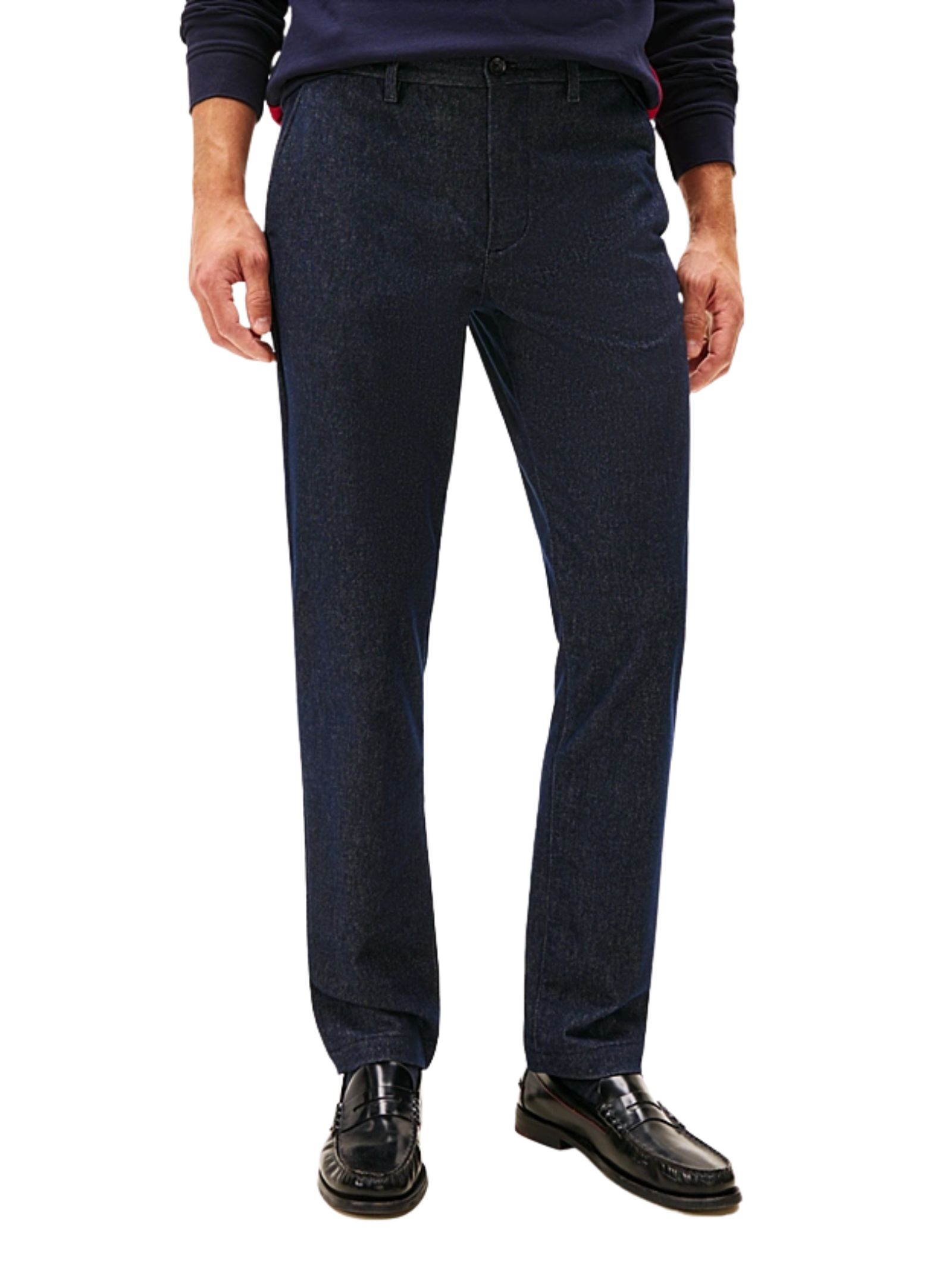 Pantaloni chino Tommy Hilfiger realizzati in un confortevole misto cotone stretch con motivo mélange spazzolato, definiti da una chiusura con zip e bottone, due tasche ad angolo aperte in vita e due tasche a filetto con bottone sul retro; completati dal nastro iconico sul fianco, dal branding Tommy Hilfiger e dalla bandierina ricamata sul retro, presentano una vestibilità dritta che garantisce comfort e stile quotidiano. Composizione: 51% cotone, 31% poliestere, 16% viscosa, 2% elastan.