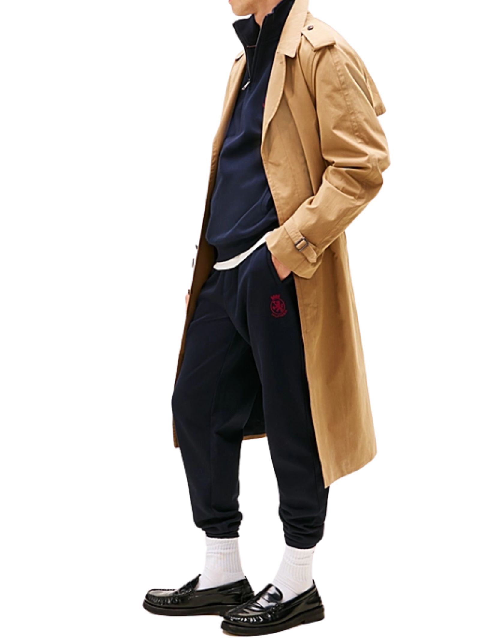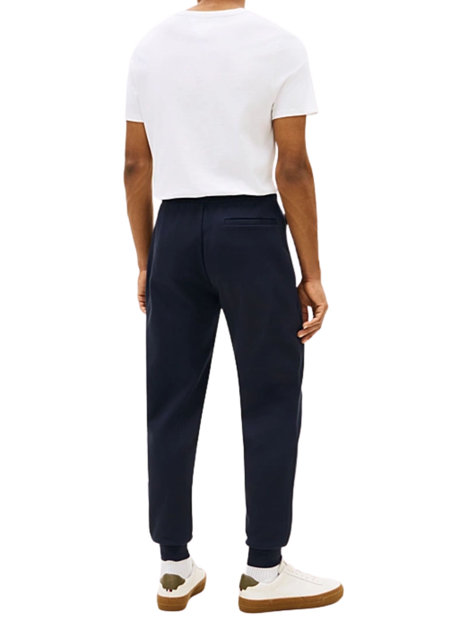 Pantaloni jogger in misto cotone realizzati in maglia tecnica, con elastico in vita regolabile con lacci, due tasche ad angolo aperte sui lati e tasca a filetto sul retro, impreziositi dallo stemma TH ricamato sulla coscia,vestibilità regular fit con fascia elastica alla caviglia. Composizione: 72% cotone, 28% poliestere.