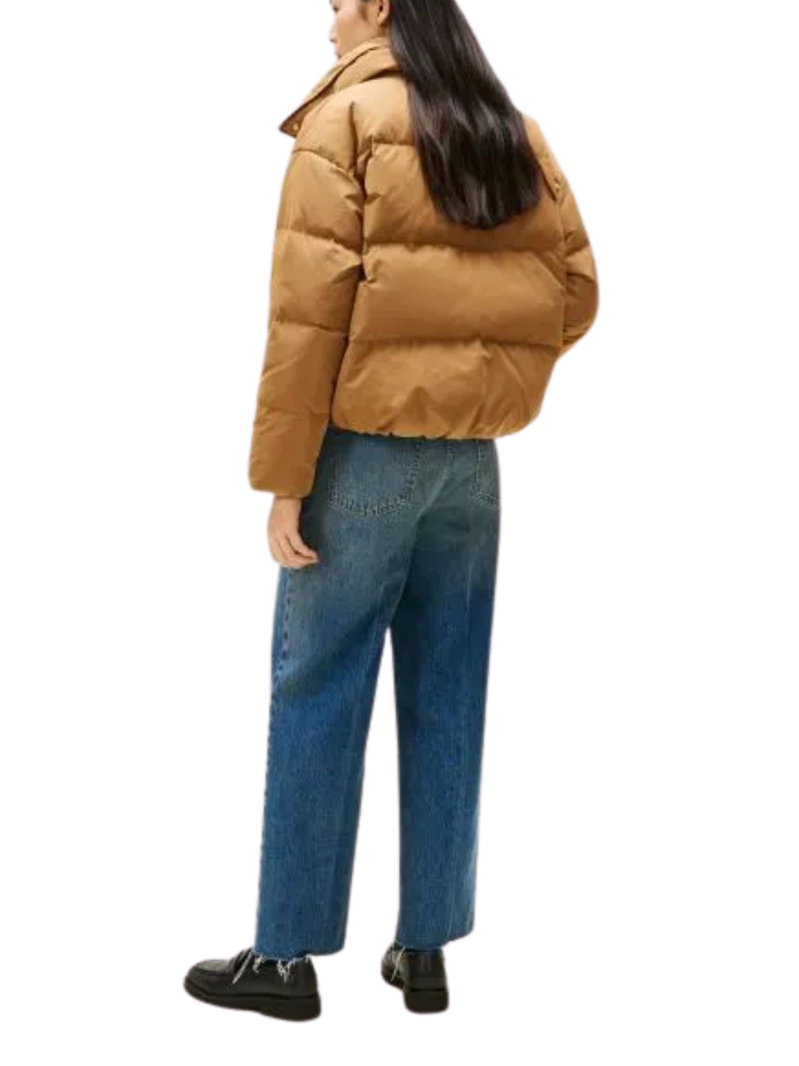 Piumino Tommy Hilfiger con imbottitura in piuma e finitura idrorepellente, ideale per restare caldi e asciutti nelle giornate piovose. Presenta collo a imbuto, chiusura con bottoni automatici, due tasche in vita e fodera a contrasto. Dettagli distintivi includono bottoni dorati con logo, nastro con firma allinterno della scollatura e ricamo dello stemma TH sul petto. Vestibilità regolare. Composizione: 100% poliestere, imbottitura in piuma (143 g), fodera in poliestere.