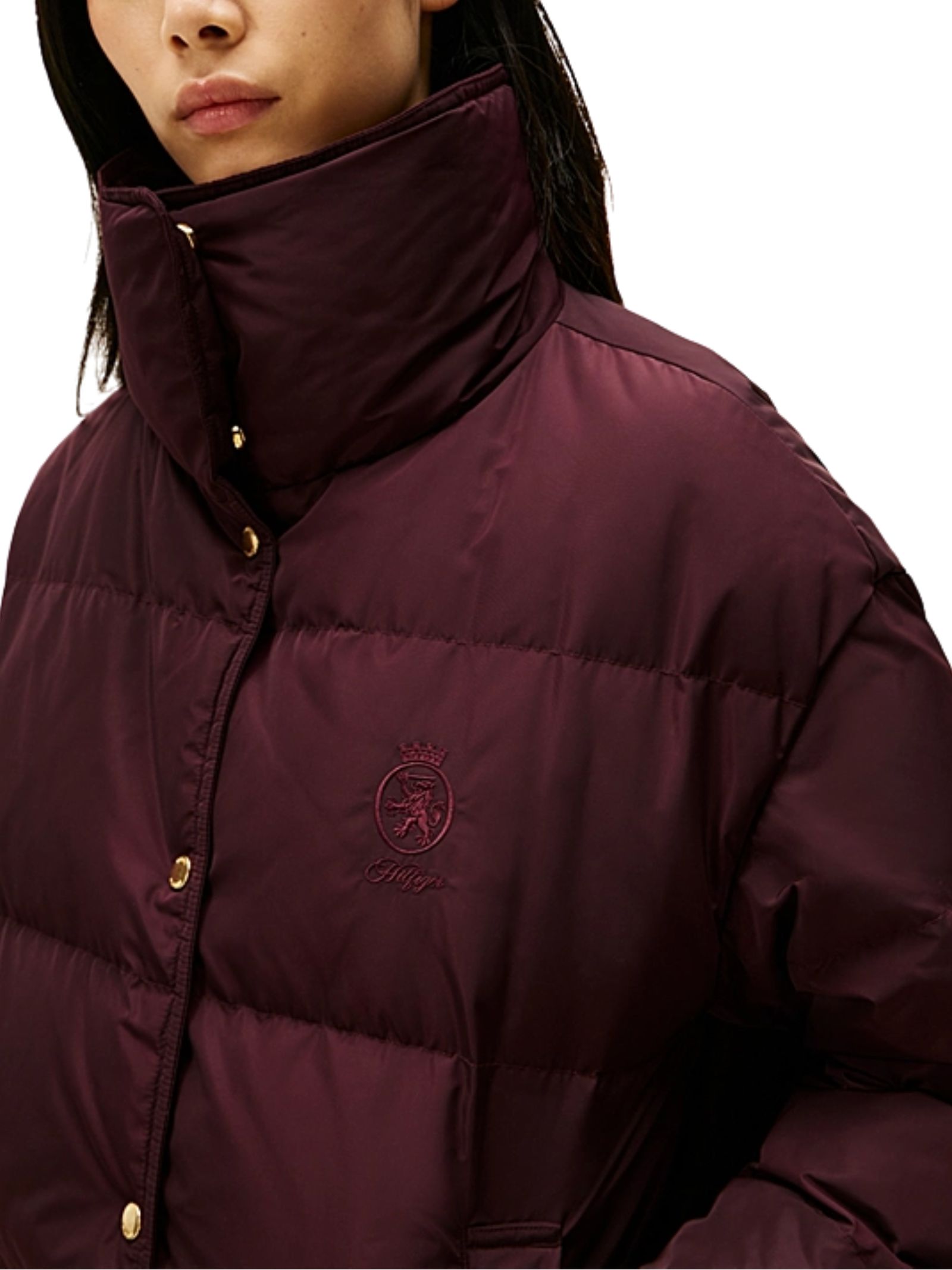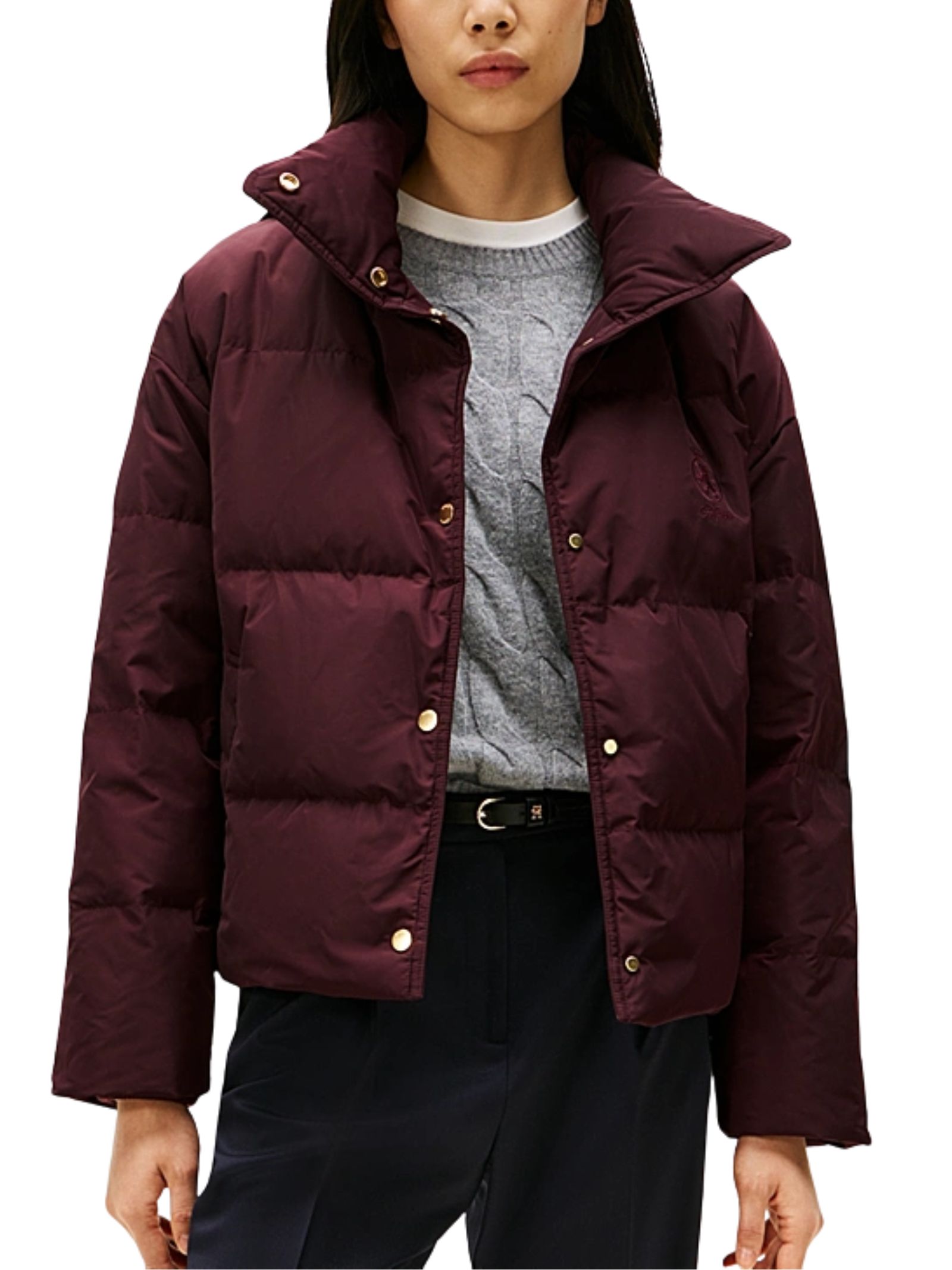 Piumino Tommy Hilfiger con imbottitura in piuma e rivestimento idrorepellente, progettato per offrire calore e protezione dalla pioggia. Presenta collo a imbuto, chiusura con bottoni automatici, due tasche a filetto in vita e fodera a contrasto. I bottoni dorati con logo, il nastro iconico allinterno del collo e lo stemma TH ricamato sul petto aggiungono un tocco distintivo. Vestibilità regular con spalle scese. Composizione: 100% poliestere, imbottitura in piuma, fodera in poliestere.