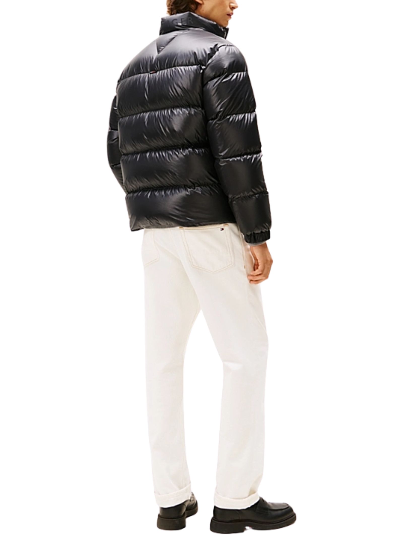Piumino Tommy Hilfiger con finitura lucida e imbottitura in piuma, ideale per affrontare il freddo con stile. È realizzato in tessuto idrorepellente e presenta collo a listino, chiusura con zip integrale, due tasche laterali e una tasca interna con zip. Il logo tono su tono sul retro del colletto e la patch gommata sulla manica aggiungono un tocco iconico. Vestibilità regular. Composizione: 100% poliestere, imbottitura in piuma.
