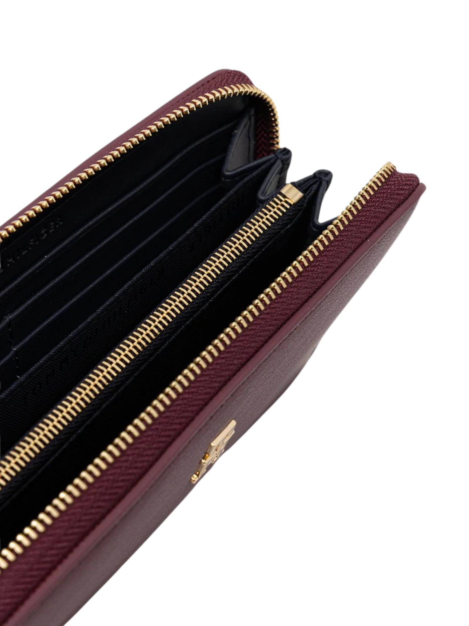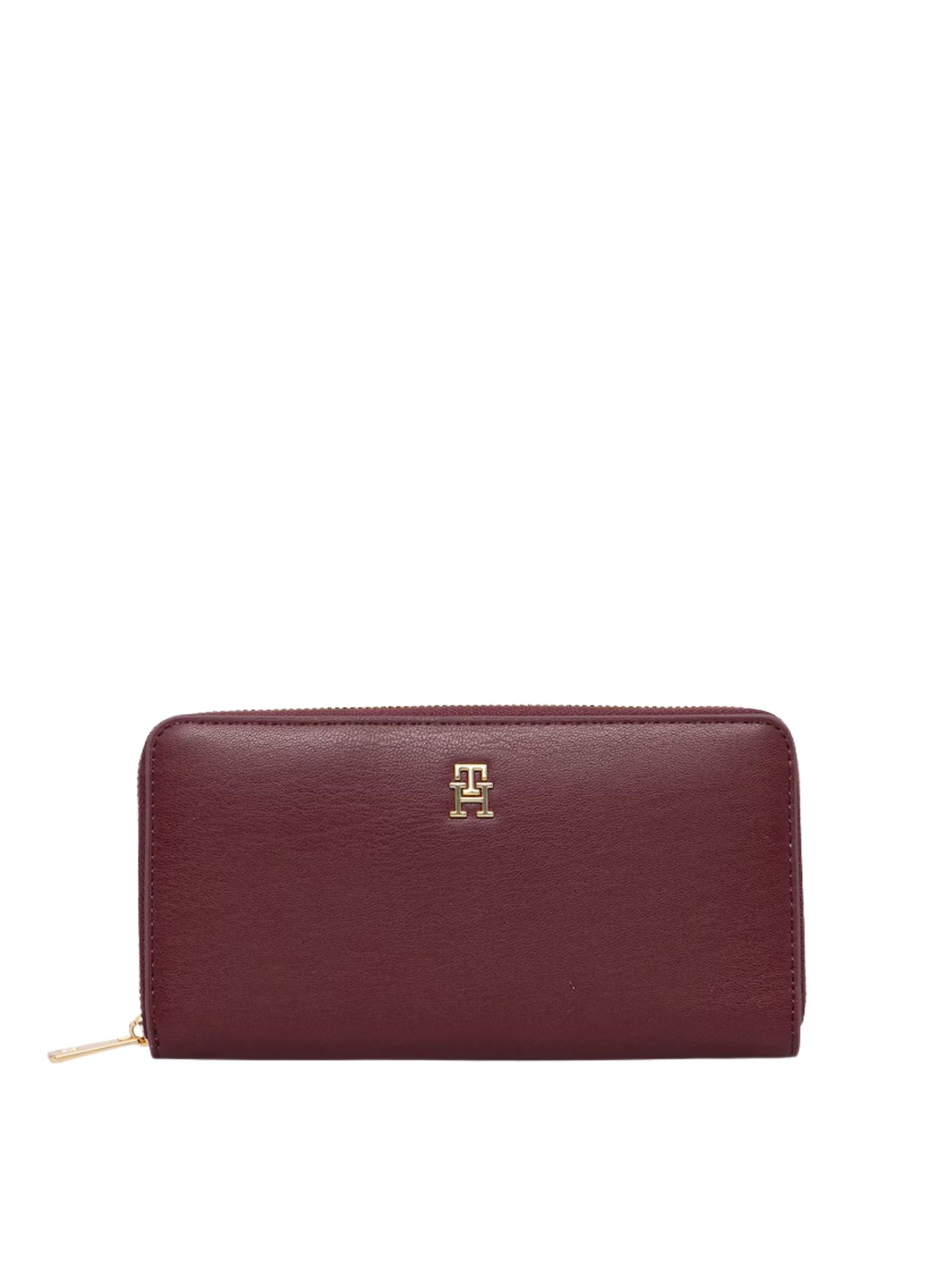 Portafoglio grande Tommy Hilfiger realizzato in pelle sintetica, confezionato in una scatola con il marchio. Dotato di chiusura a zip, tasca portamonete con zip, e scomparti interni per carte di credito (12 fessure) e per le banconote (2 scomparti). Il modello è rifinito con fodera, offrendo una soluzione pratica e elegante per l'organizzazione dei tuoi accessori. Le dimensioni sono 10 cm x 19,5 cm.