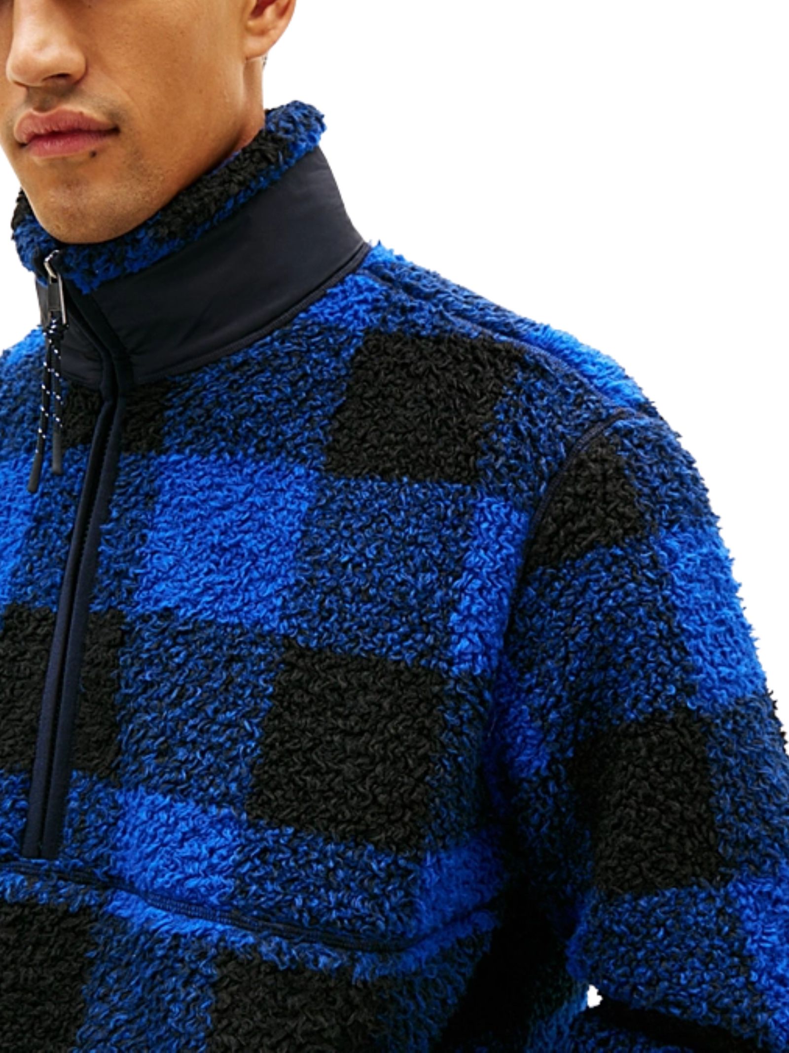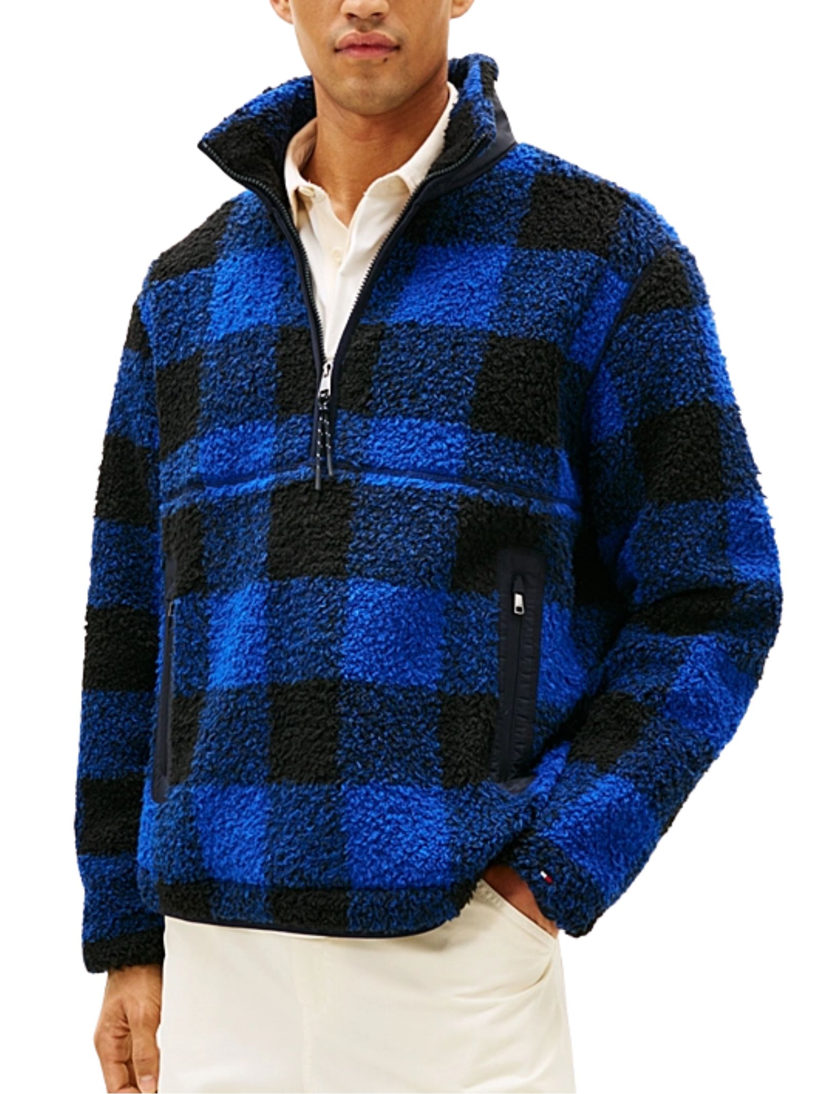 Pullover in sherpa con mezza zip e motivo a quadri all over, ideale per aggiungere calore e personalità al look. Dotato di due tasche con zip in vita, patch logo tono su tono, branding Tommy Hilfiger e bandierina ricamata sul polsino. Vestibilità regular fit con spalle leggermente scese. Realizzato in 62% poliestere e 38% acrilico.
