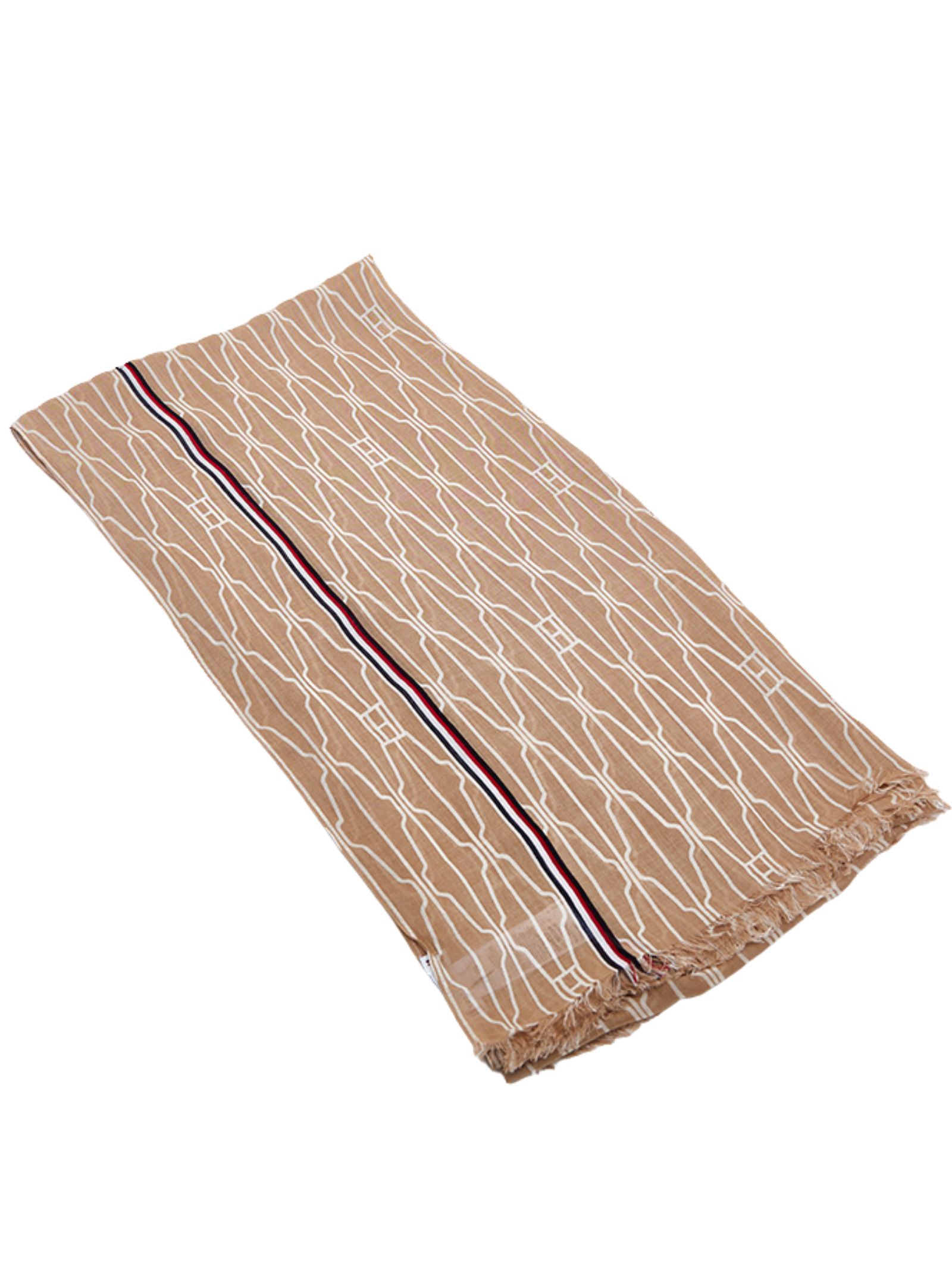 Modello con placchetta metallizzata Tommy Hilfiger e nastro iconico lungo un lato. Stampa all over. 100% modal