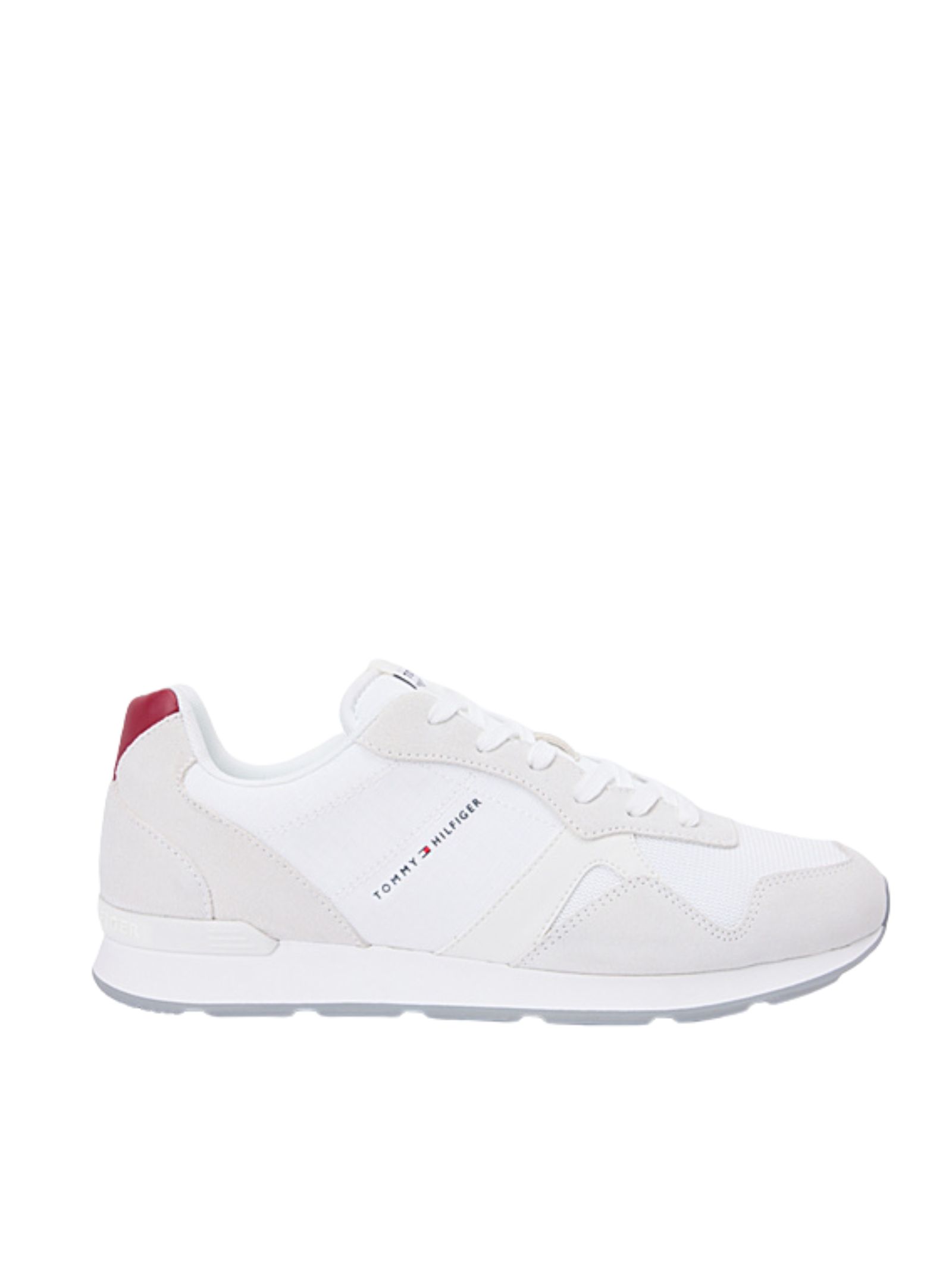 Sneakers basse stringate realizzate in tessuto ripstop di poliestere, caratterizzate da sezioni con mix di texture che donano un look dinamico e moderno. Presentano logo Tommy Hilfiger sul lato e sulla linguetta, logo in rilievo sul retro e branding del marchio. Interno in poliestere, soletta rimovibile in poliuretano, gomma termoplastica e altri materiali e suola antiscivolo in gomma per comfort e stabilità. Composizione: 100% poliestere.