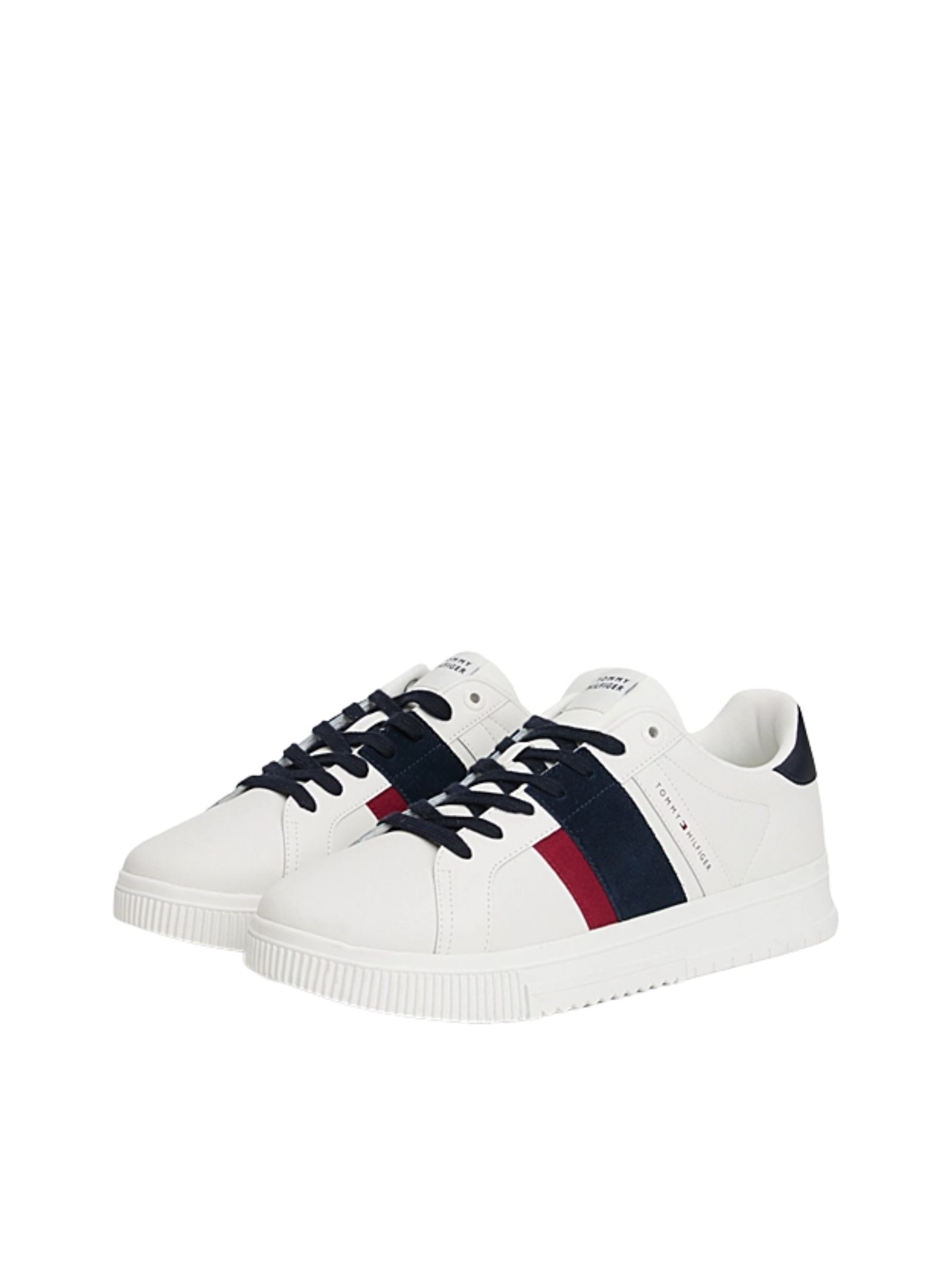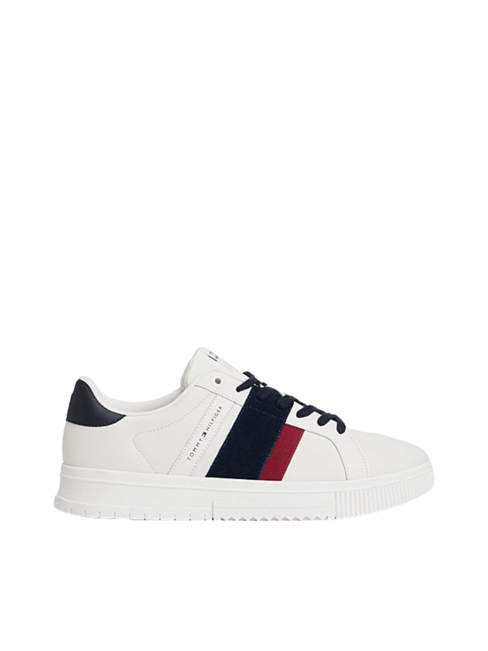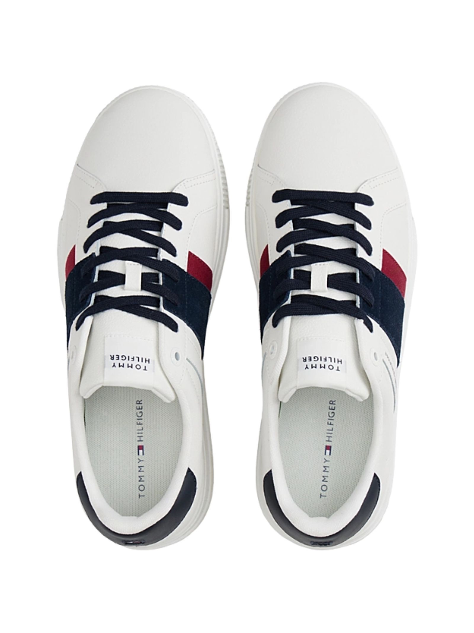 Sneakers Tommy Hilfiger in pelle liscia, rifinite dalle sezioni colorate a contrasto, si distinguono per la suola spessa con sottile finitura antiscivolo. Logo Tommy Hilfiger sulla linguetta, sull'esterno e sulla suola.
