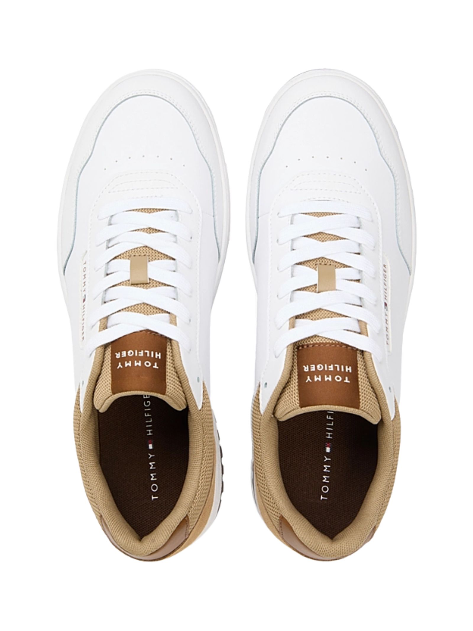 Sneakers basse stile basket leggere e dal design dinamico, realizzate in un mix di pelle e materiali sintetici con sezioni in camoscio e texture a contrasto, arricchite da dettagli per la ventilazione, sezione posteriore a contrasto, suola in gomma bicolore e logo Tommy Hilfiger impresso sul lato per un look sportivo e contemporaneo. Composizione: 90% pelle, 10% poliuretano.