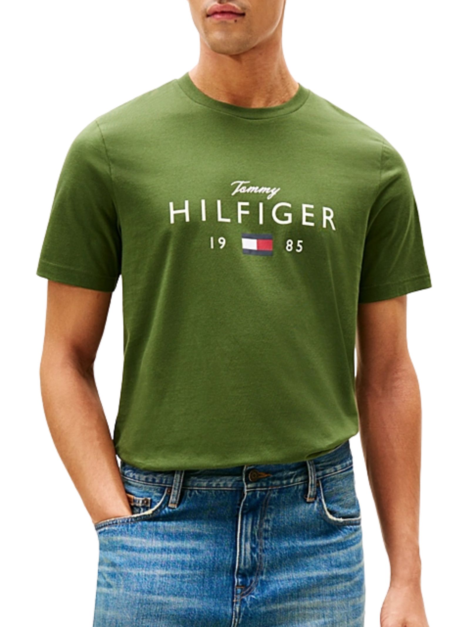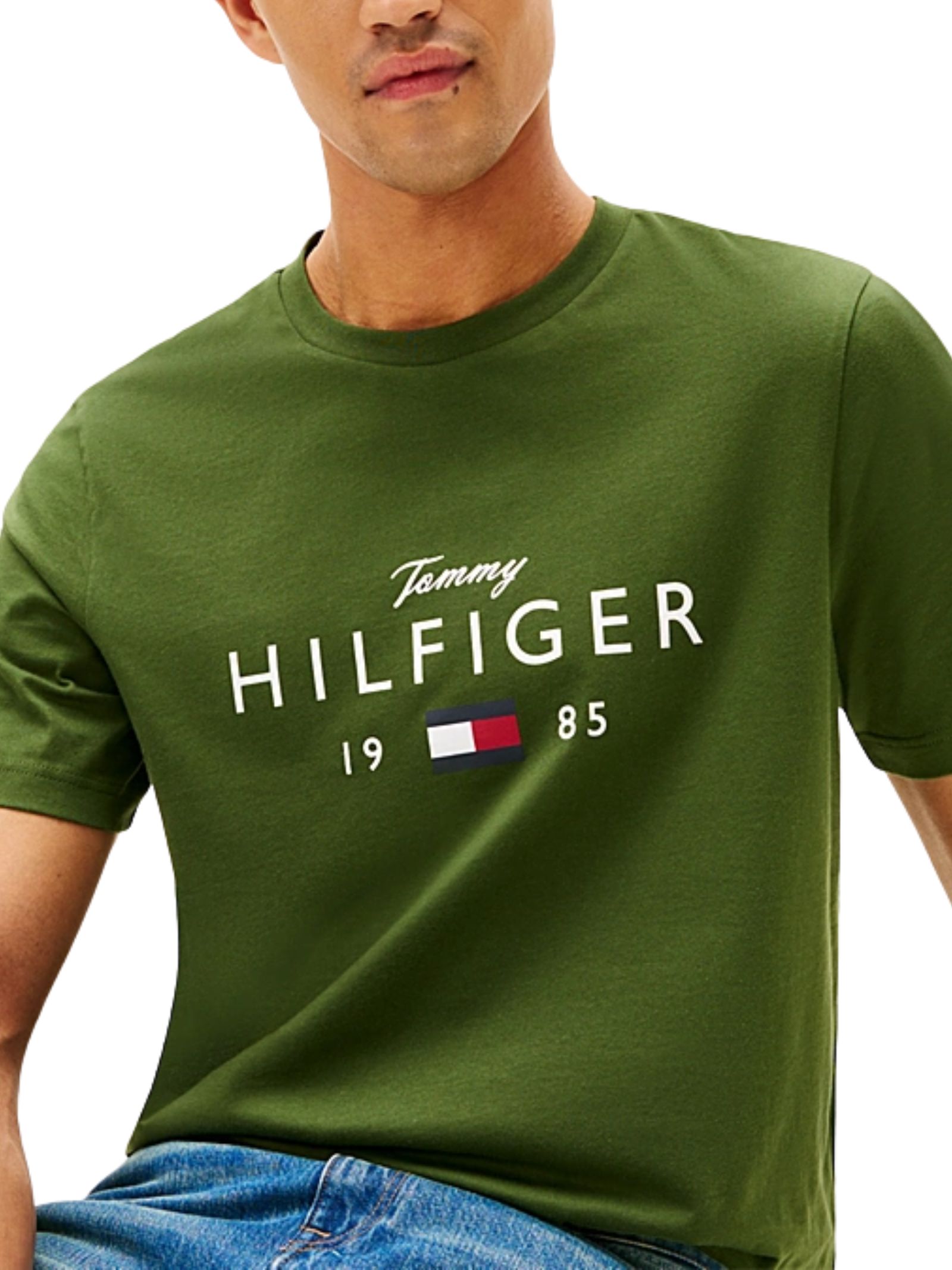 T-shirt girocollo Tommy Hilfiger in jersey di puro cotone, con vestibilità regular e spalle leggermente scese, nastro iconico all'interno del collo, grafica con logo sul petto e branding, ideale per un look casual e moderno. Composizione: 100% cotone.