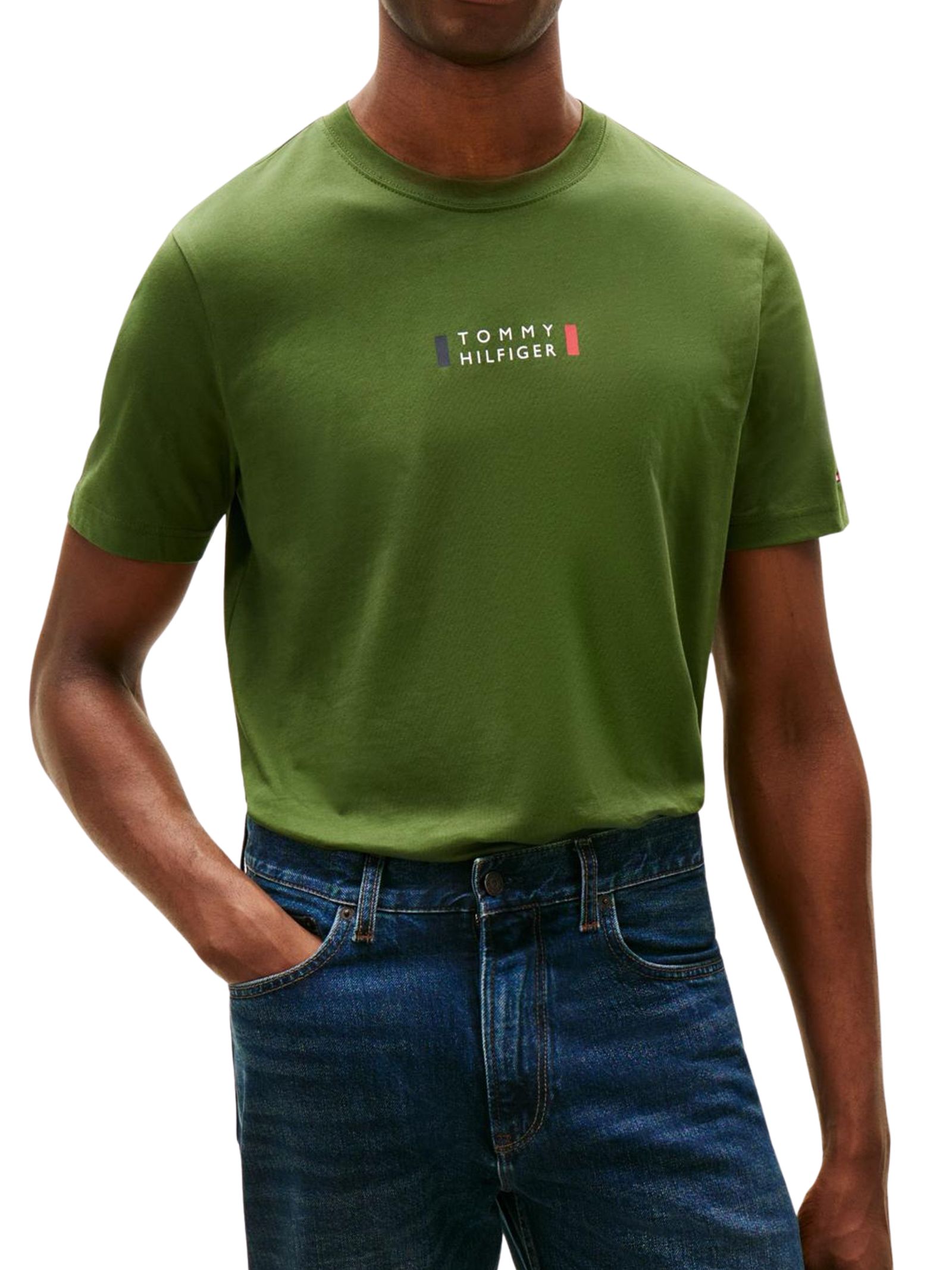 T-shirt girocollo Tommy Hilfiger in cotone con stampa sul davanti, vestibilità regular fit e lunghezza classica, perfetta per un look casual e versatile. Composizione: 100% cotone.