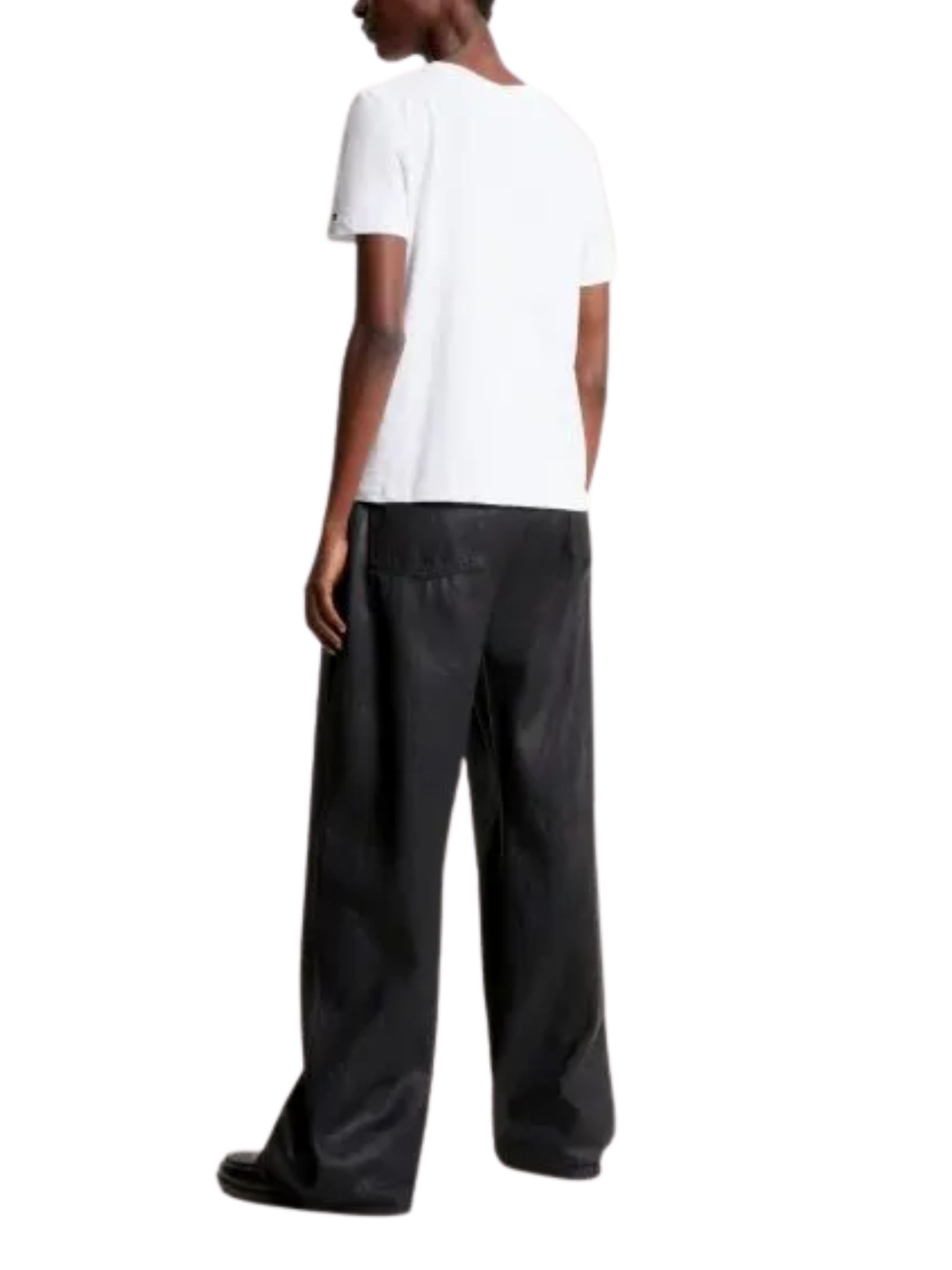 T-shirt in cotone con vestibilità regolare, un capo essenziale e versatile impreziosito dal logo Tommy Hilfiger stampato sul petto, ricamo della bandiera sulla manica e girocollo classico; realizzata al 100% in cotone.