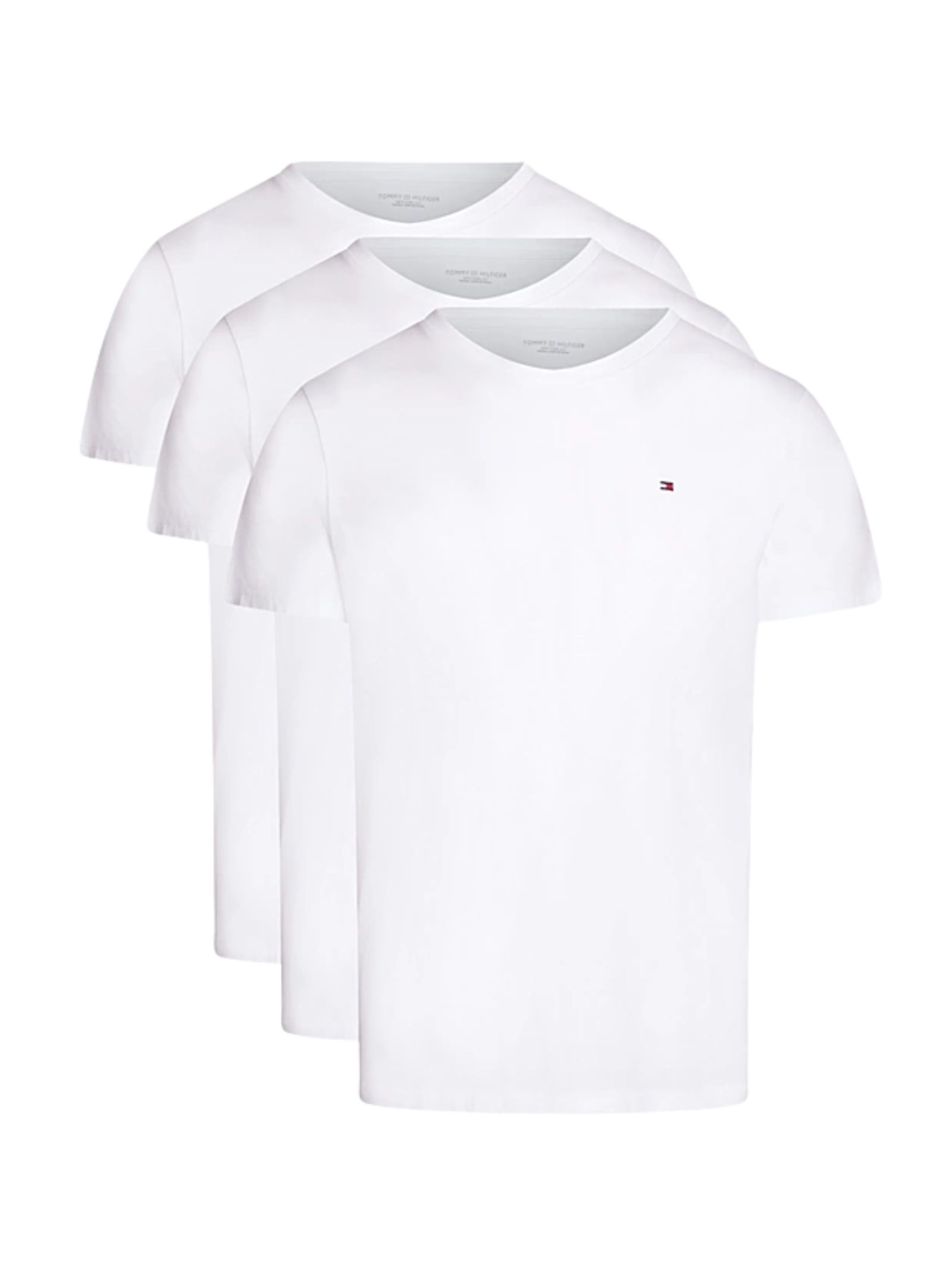 Confezione da 3 T-shirt Tommy Hilfiger in jersey di puro cotone traspirante con girocollo, regular fit e bandierina ricamata sul petto, per comfort quotidiano e stile iconico.