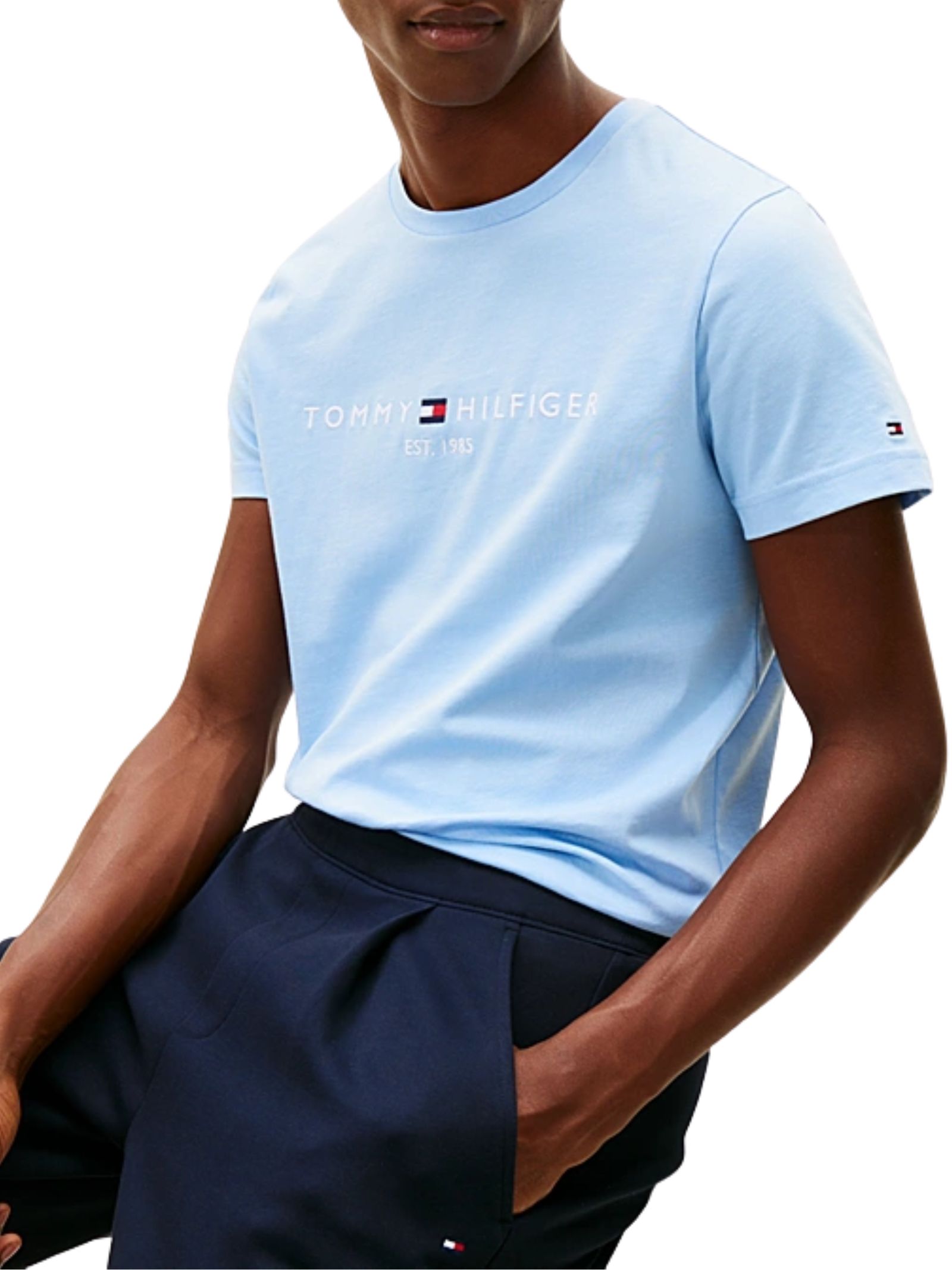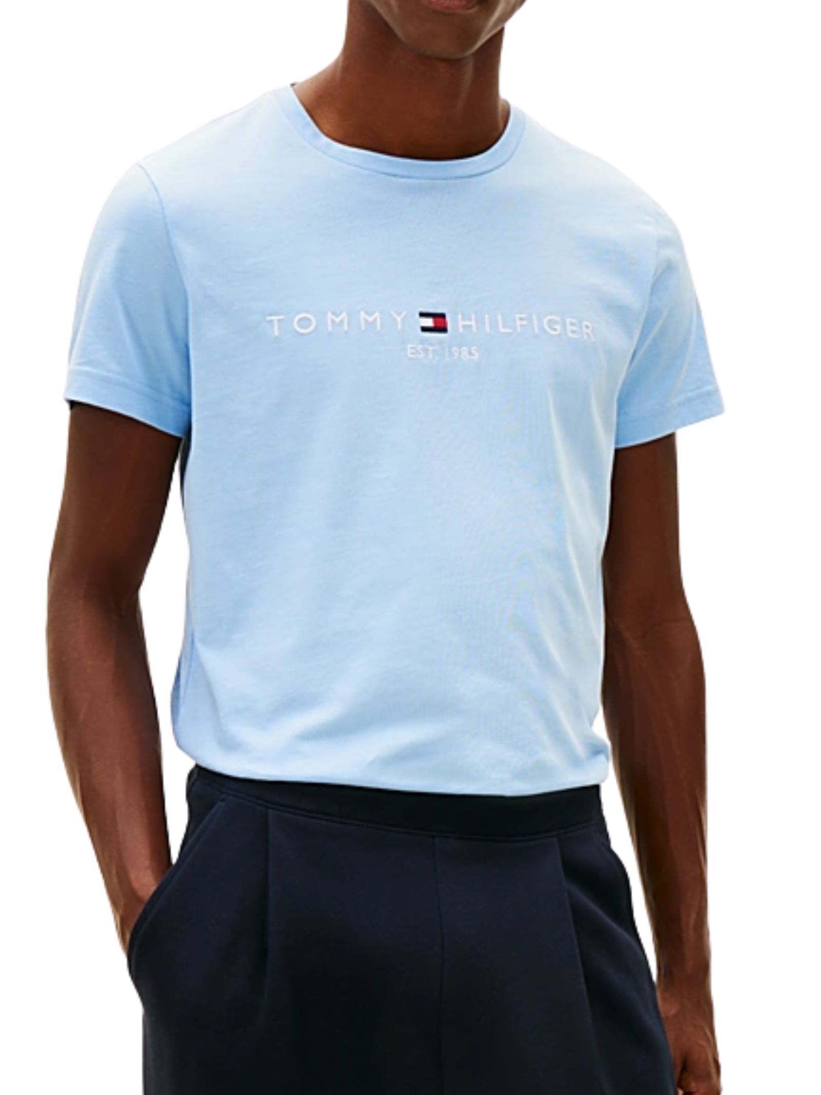T-shirt girocollo in jersey di puro cotone, caratterizzata da vestibilità slim, nastro iconico all'interno del collo, logo Tommy Hilfiger ricamato sul petto e bandierina ricamata sulla manica, perfetta per un look casual curato. Composizione: 100% cotone.