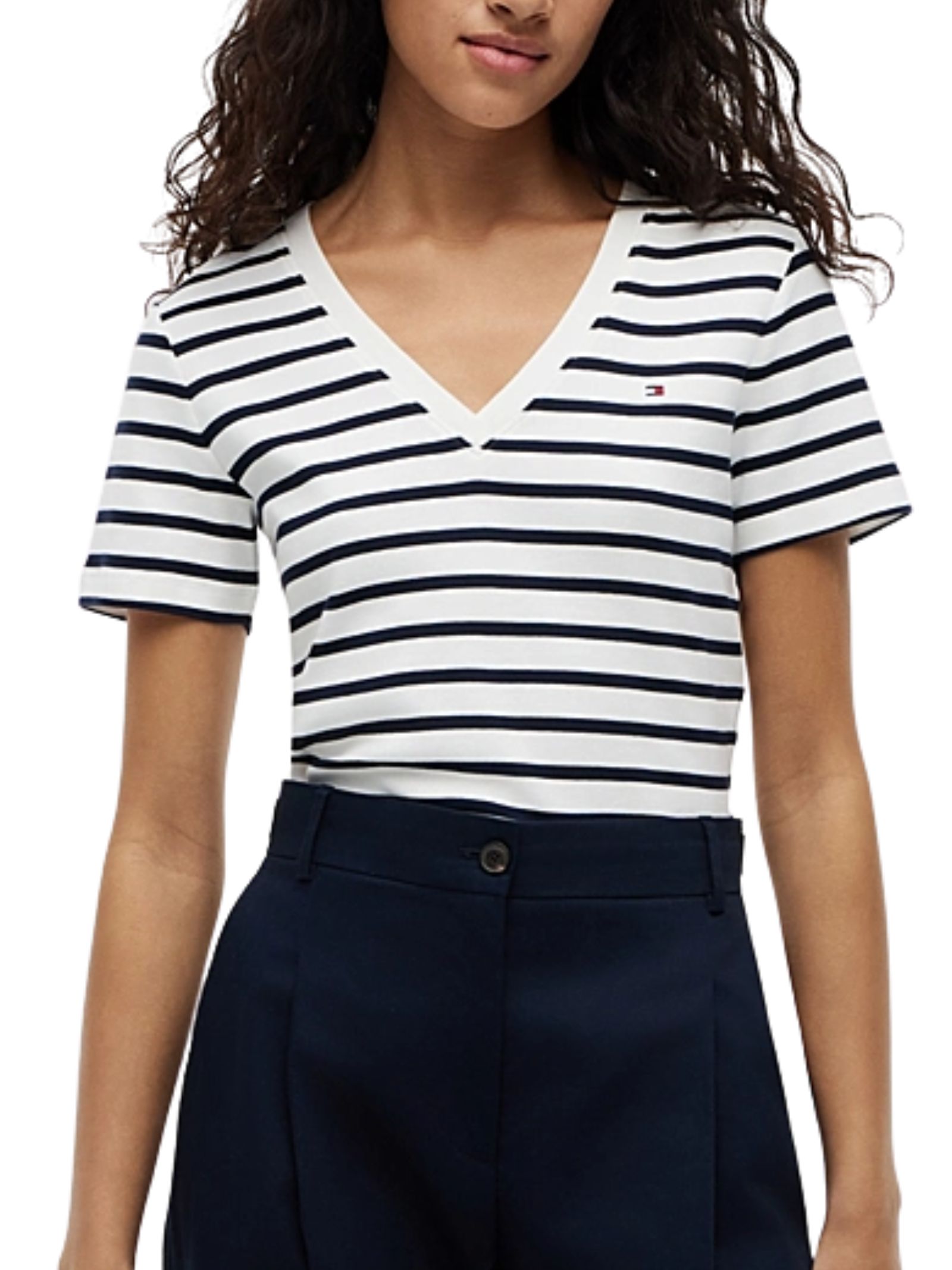T-shirt a V Tommy Hilfiger in puro cotone con trama a coste, vestibilità slim e bandierina ricamata sul petto. Composizione: 100% cotone.
