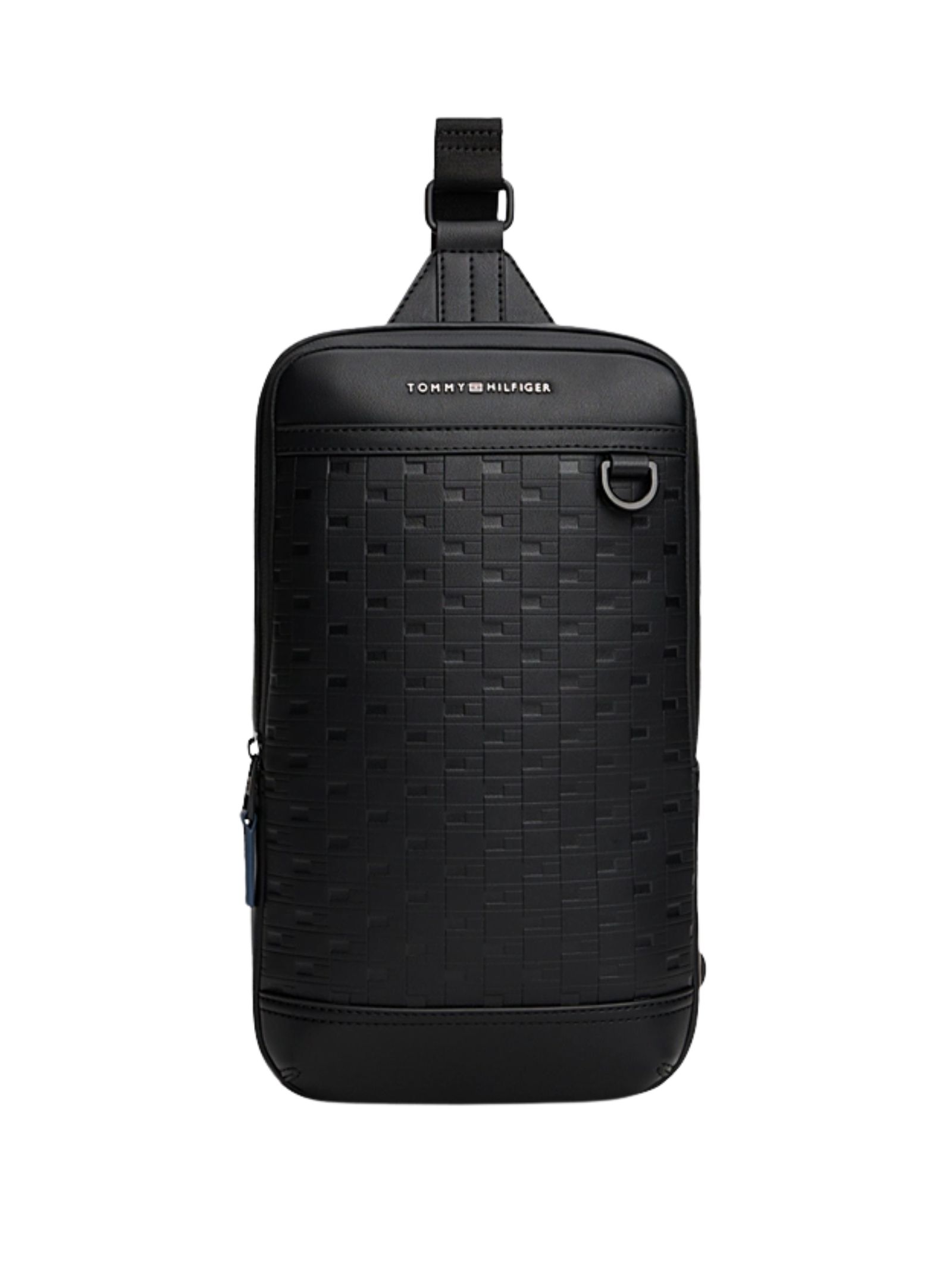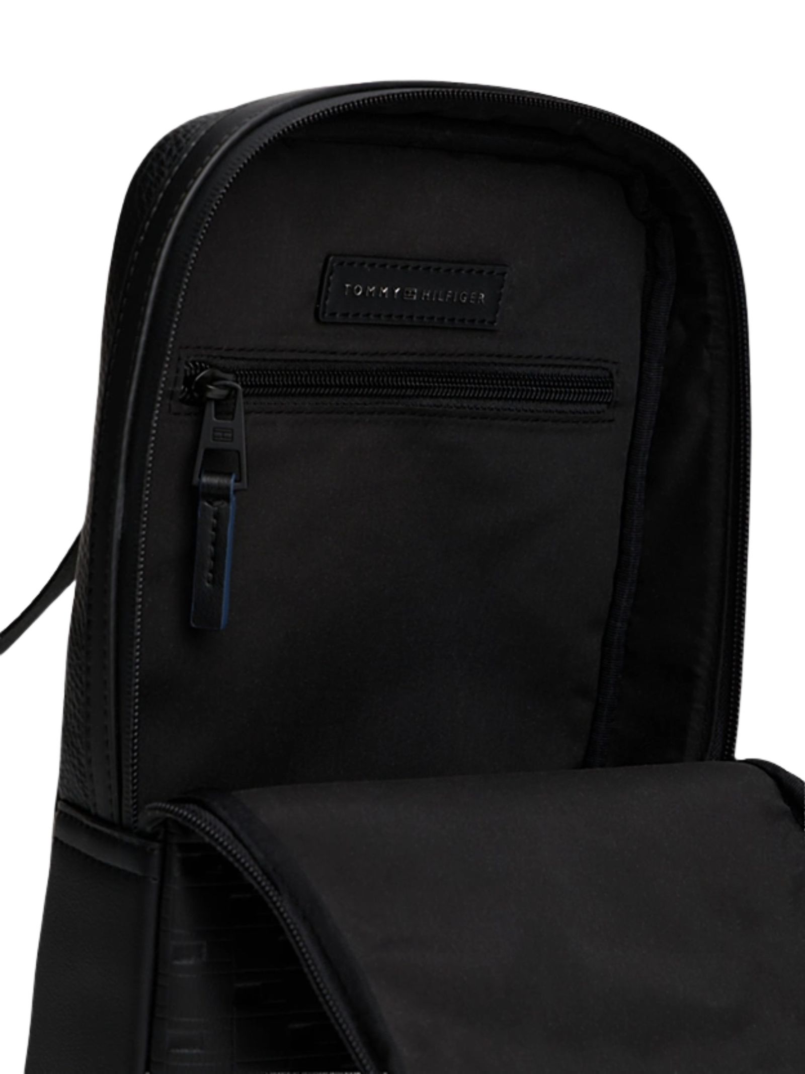 Zaino monospalla con tracolla regolabile, realizzato con sezioni a mix di texture e chiusura con zip, dotato di scomparto principale, tasca interna con zip, retro imbottito in tessuto a rete, anello a D e decorato dalliconico motivo a bandierine Tommy Hilfiger ripetuto sul davanti, completato dal logo in metallo. Dimensioni: 20 x 8 x 32 cm, capienza 5,1 l. 100% poliuretano.