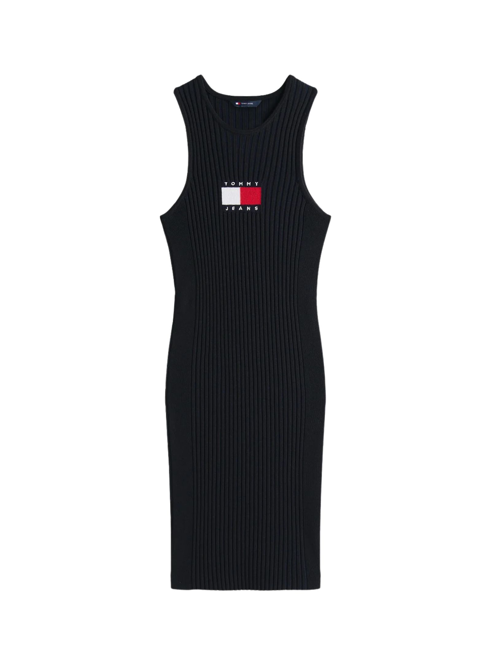 Il vestito pullover corto senza maniche Tommy Jeans è impreziosito da una lavorazione a coste all over che dona un tocco vivace e raffinato. Realizzato in misto viscosa, presenta scollatura ovale e distintivo con bandiera Tommy a intarsio sul petto. Modello slim fit, lunghezza mini, senza maniche.Composizione: 88% viscosa, 12% poliestere. Branding Tommy Jeans.