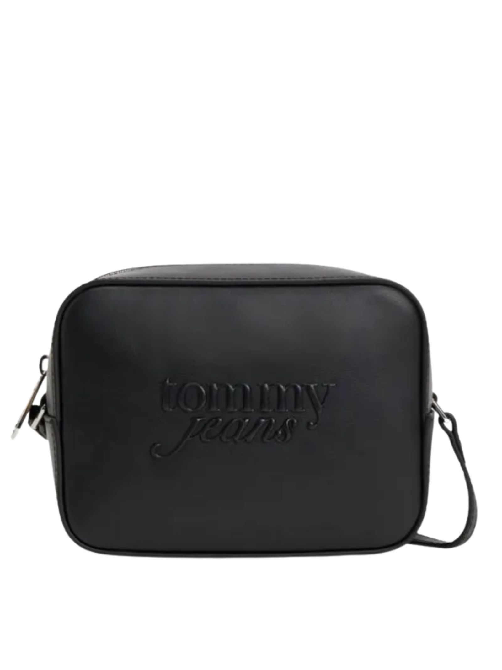 Borsa a tracolla Tommy Jeans con finitura liscia, chiusura a zip, scomparto principale e logo Tommy in rilievo sul davanti, dimensioni 18 x 7 x 14 cm, realizzata in 100% poliuretano.