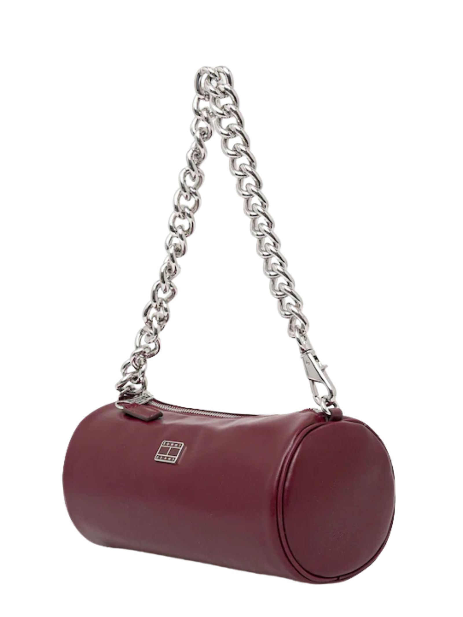 Borsetta Tommy Jeans cilindrica con catena e chiusura a zip. Lunghezza maniglia: 60 cm. Profondità: 12 cm. Altezza: 12 cm. Larghezza alla base: 24,5 cm. Composizione 100% poliuretano