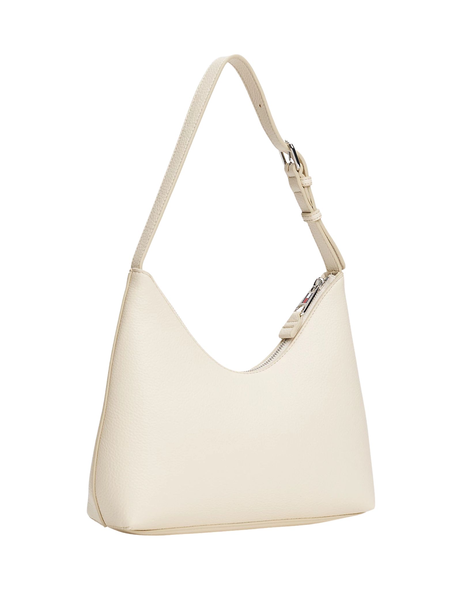 Borsa in ecopelle Tommy Jeans color panna con tracolla regolabile. Logo iconico del brand frontale e design curvo.