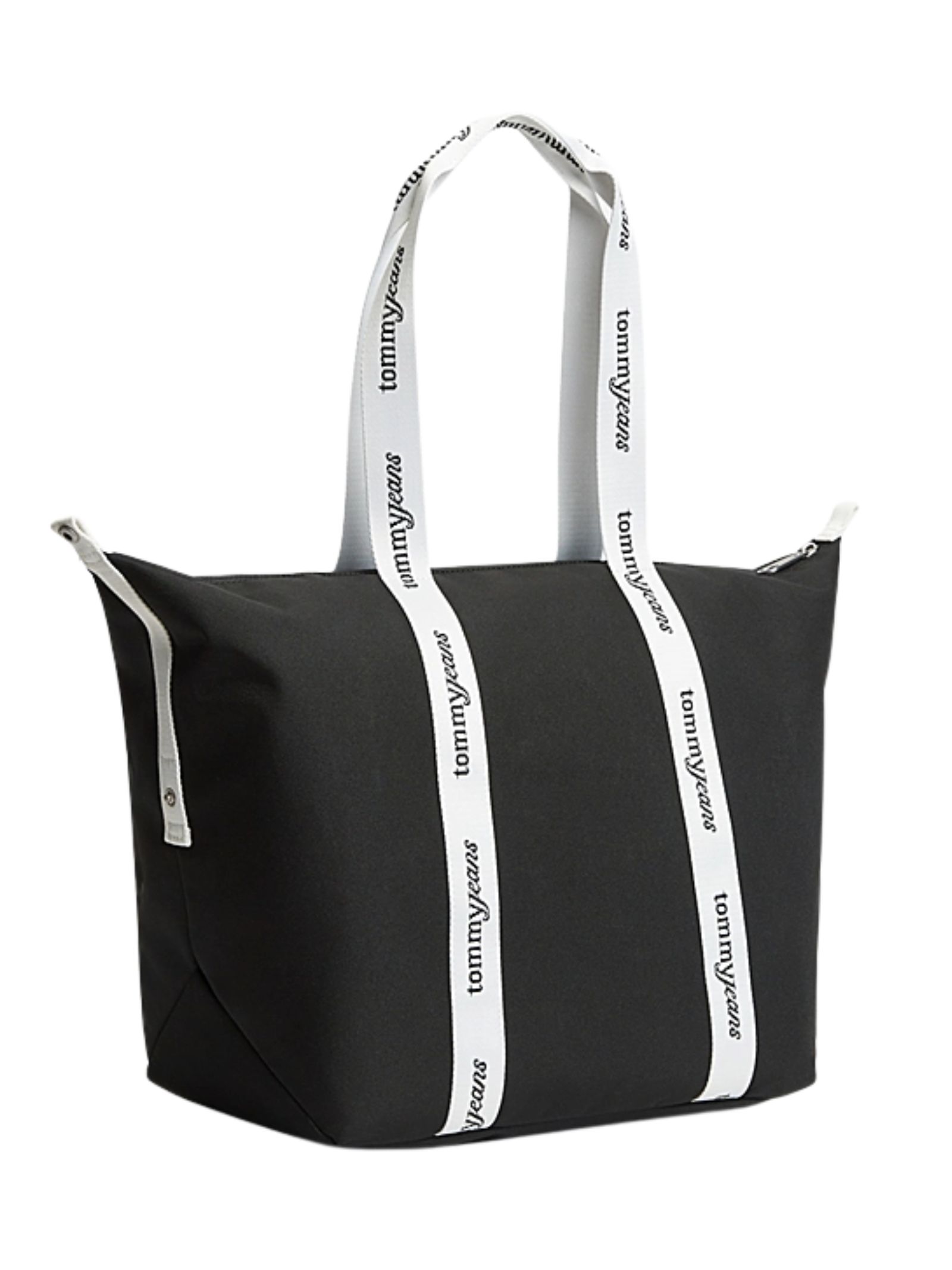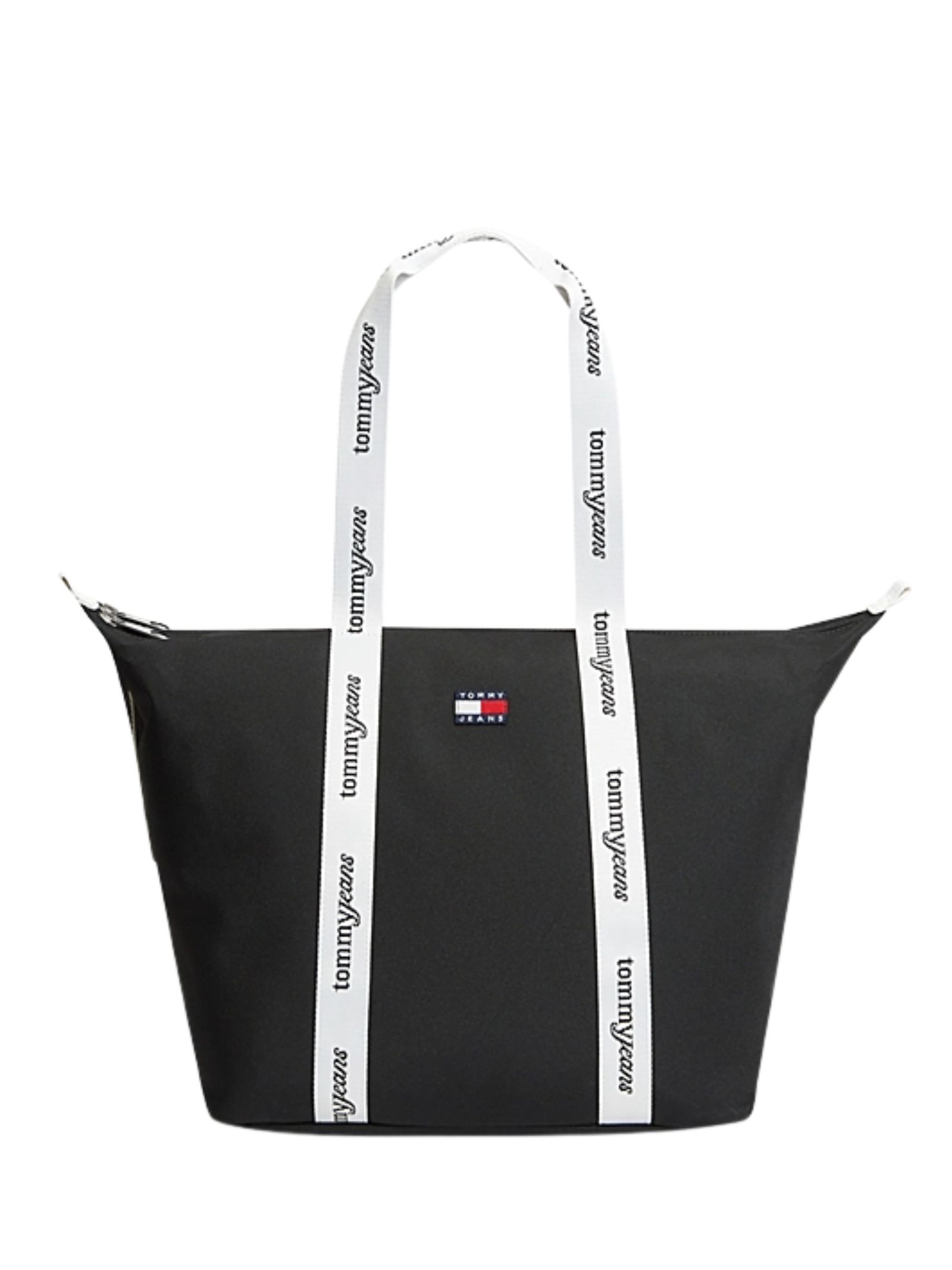 Borsa Tommy Jeans in tessuto con chiusura a zip, due manici con logo ripetuto, scomparto principale, tasca interna con zip e chinghie laterali regolabili, distintivo Tommy sul davanti, dimensioni 52 x 22 x 34 cm, realizzata in 100% poliestere.